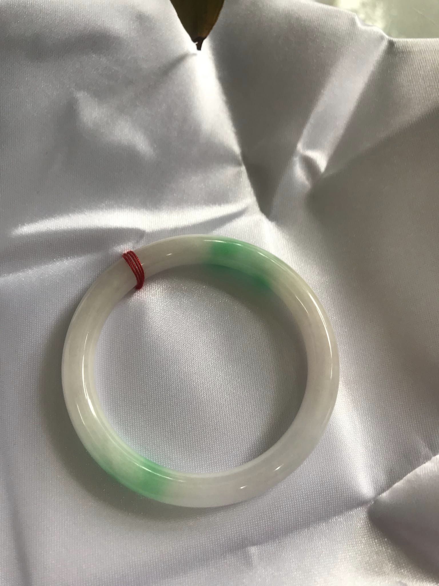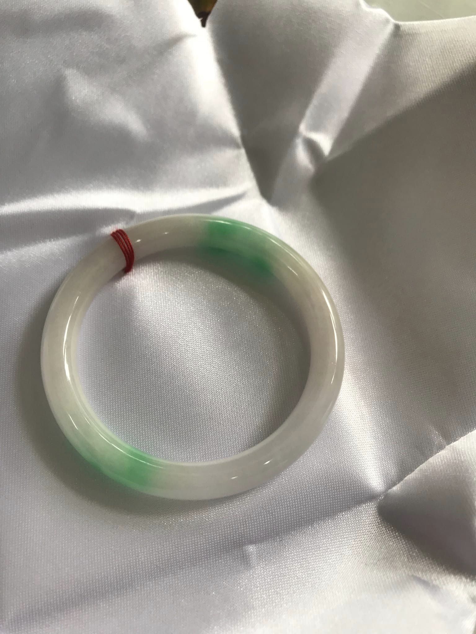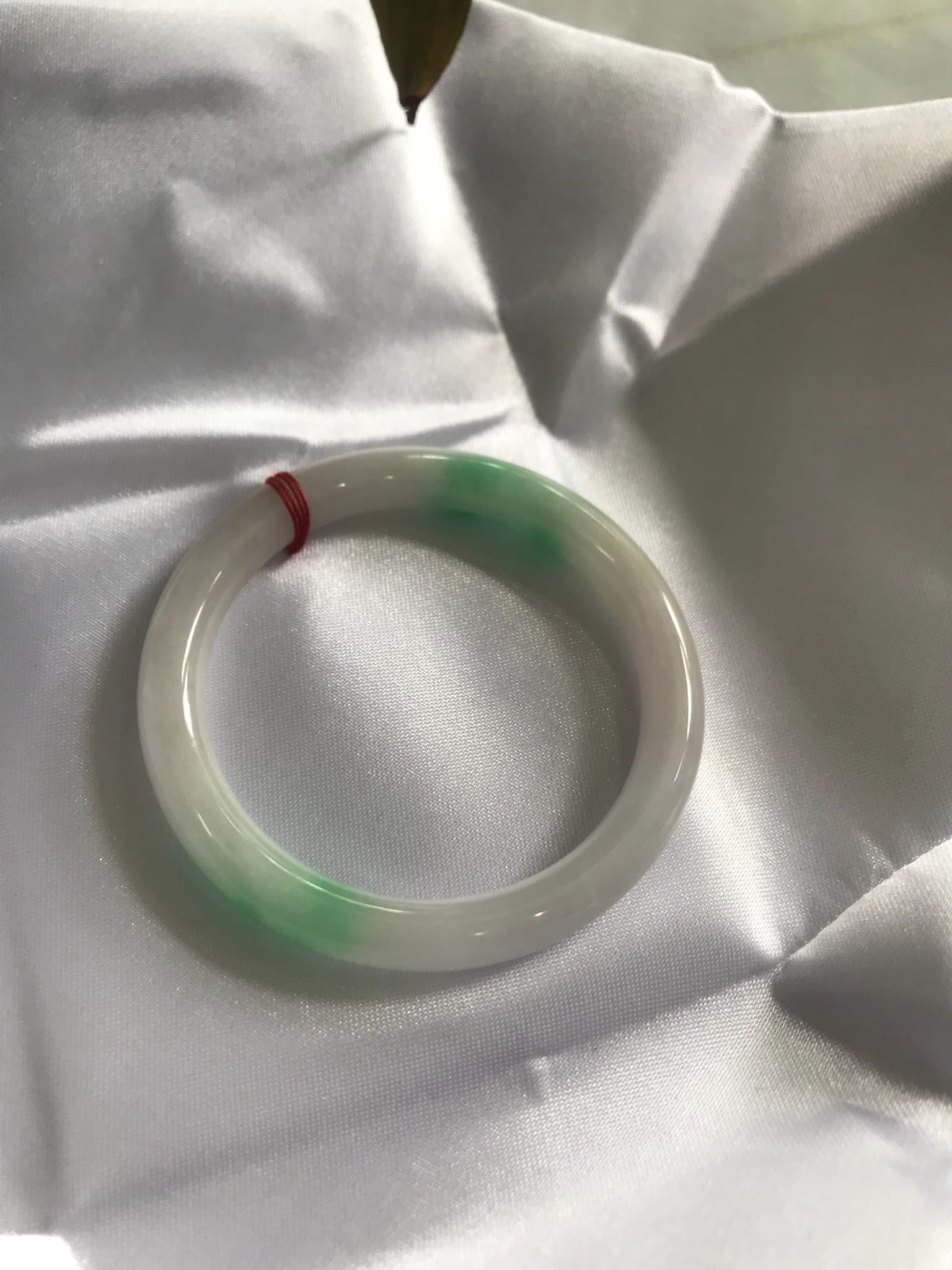 Vòng tay Nữ Đá Cẩm Thạch mới TR Lý 57 mm x cọng 7,5mm Màu Xanh lý tươi trắng 2 bên đều vòng đẹp Nữ 55kg - 64kg đeo đẹp món quà tặng chính mình