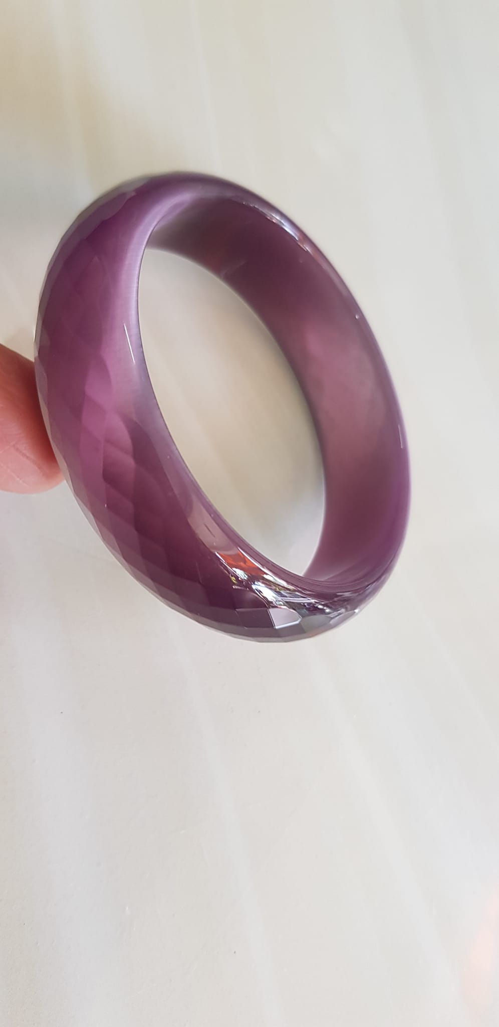 Vòng tay nữ đá mắt mèo bản hẹ giác tím mới đẹp Ni 54mm x cao 16mm x dầy 6,2mm Vòng màu tím nho #54mm