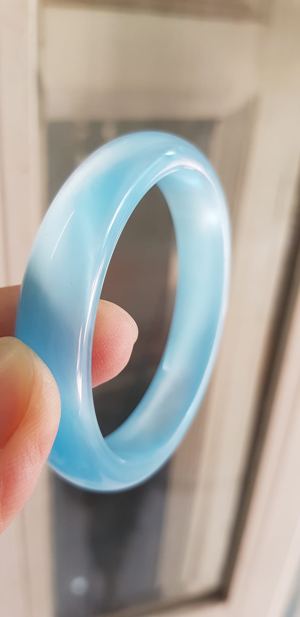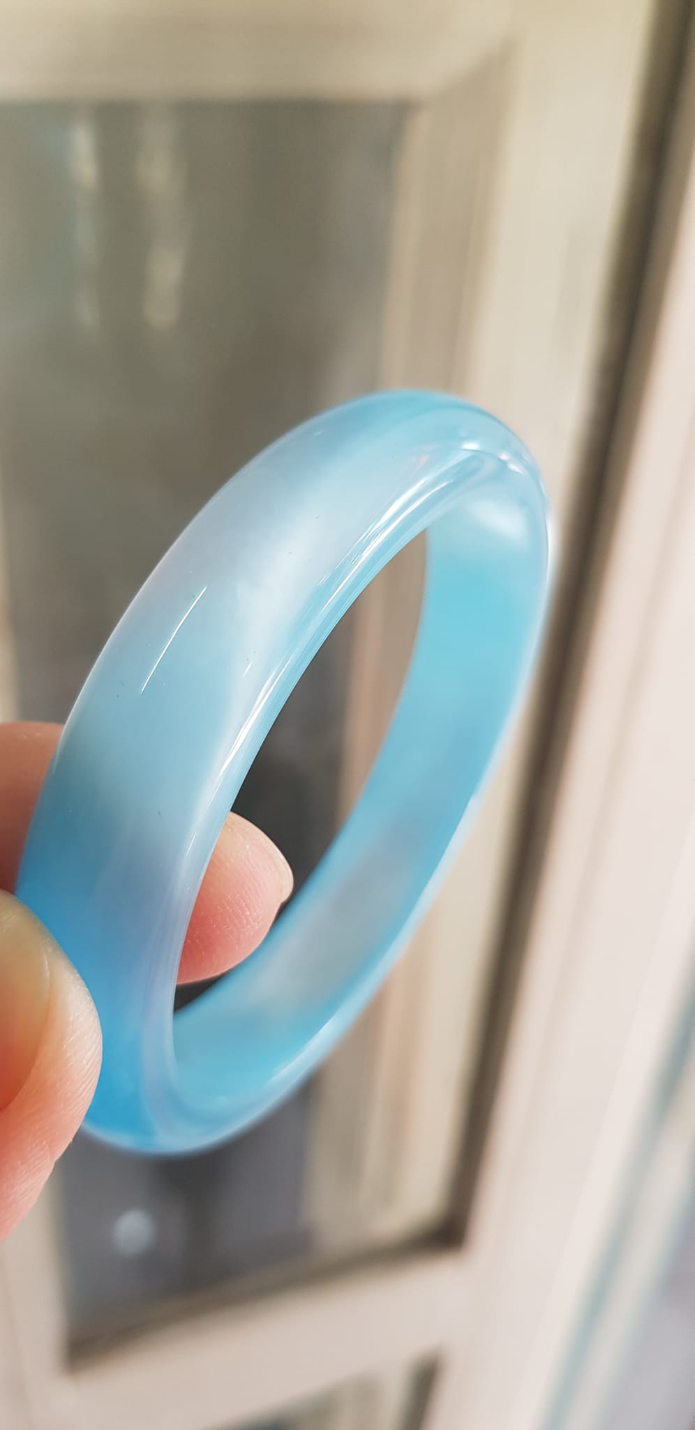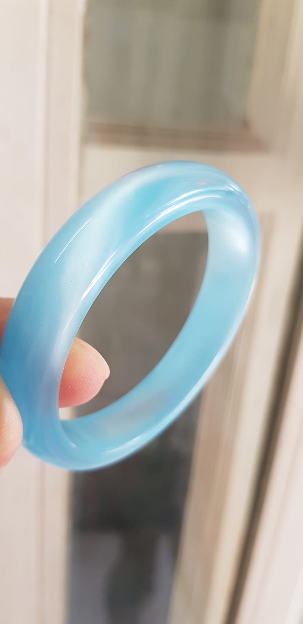 ✨Vòng tay nữ đá mắt mèo Xanh dương nhẹ bản hẹ mới Ni 53mm x cao 12mm x dầy 6,5mm Nữ 49kg - 54kg đeo Vòng màu xanh dương nhẹ xinh tươi đẹp rẻ lắm chuẩn hợp nữ mệnh thuỷ mệnh mộc ạ