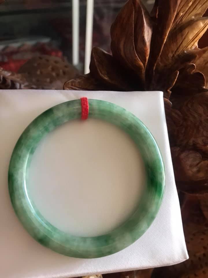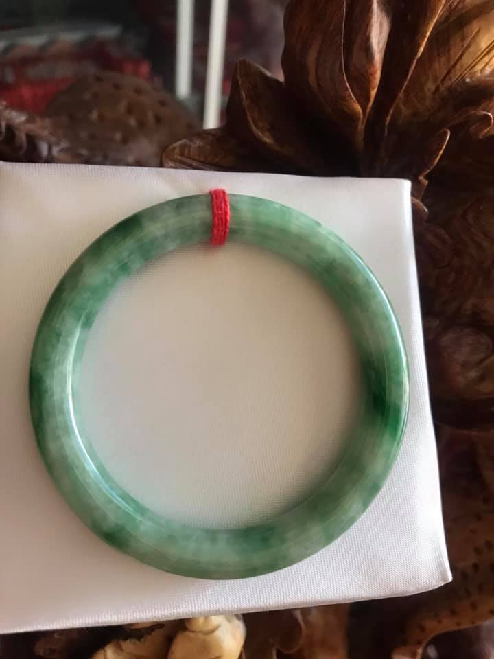 Vòng Tay Nữ Đá Ngọc Cẩm Thạch Tự Nhiên Bản Hẹ Sịn Đậu Lý Sao Ni 48mm Cao 12mm Dầy 6mm đPnj No 185034