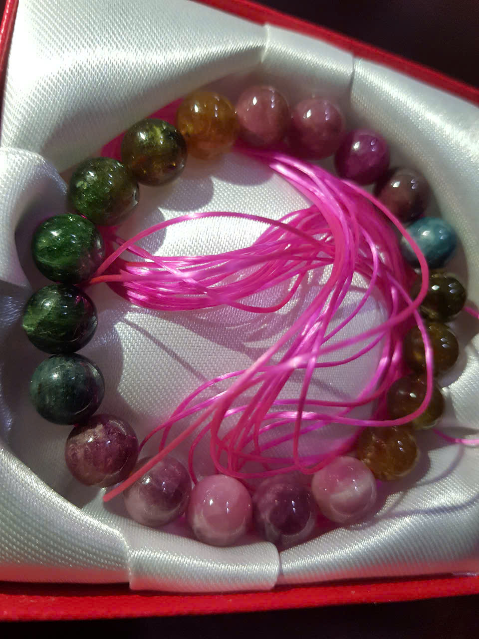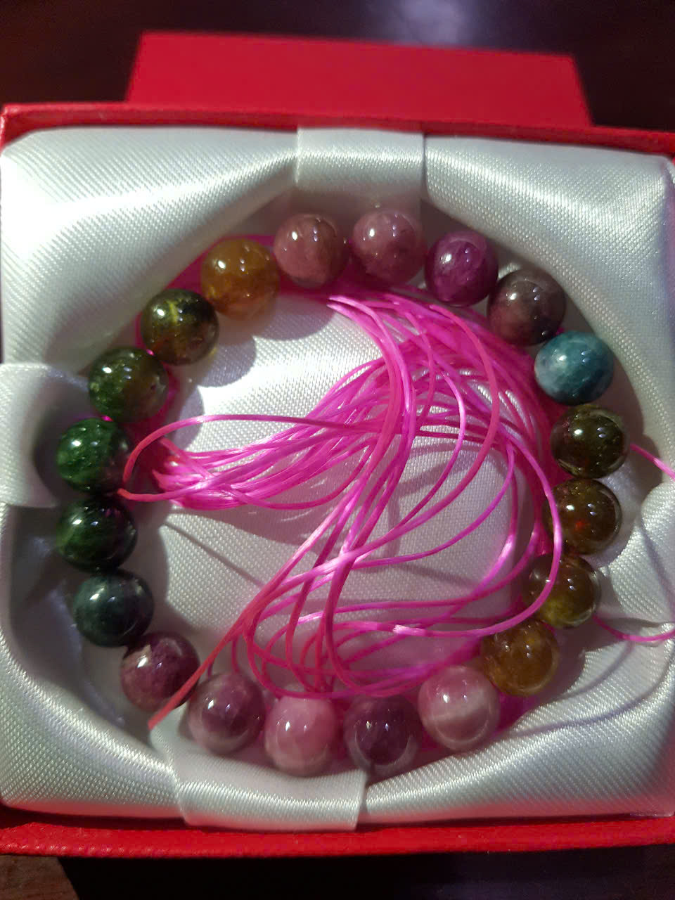 Vòng tay Nữ tourmaline dâu tây tự nhiên đa sắc màu tươi đẹp thiệt sang size hạt 9,5mm vòng này hợp Nữ tất cả các mệnh đeo nhe ạ