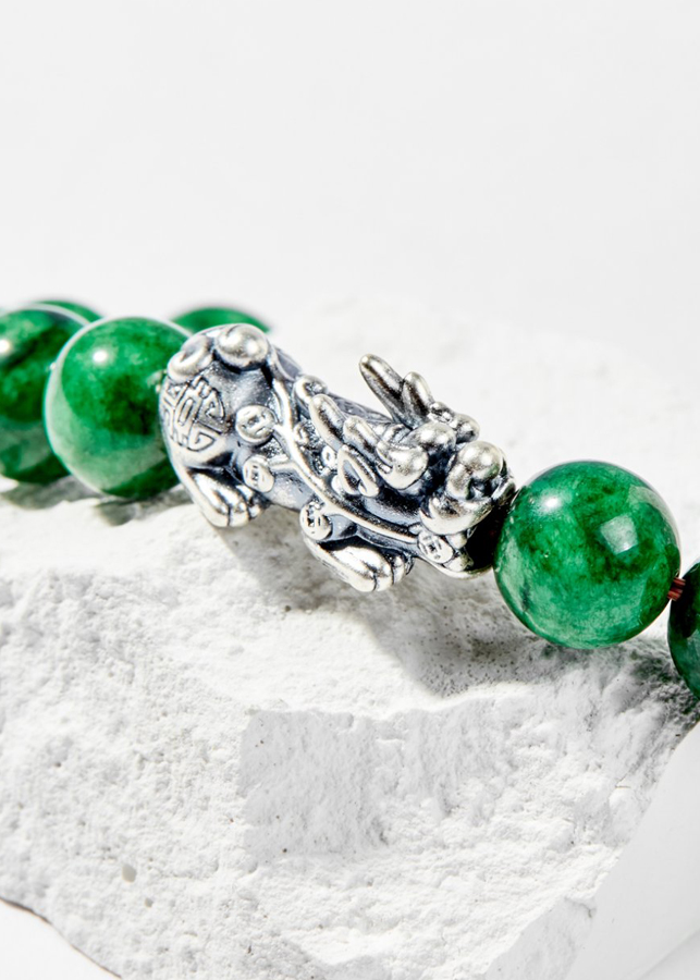 Vòng Tay Phong Thủy Đá Cẩm Thạch Sơn Thủy Phối Charm Tỳ Hưu Bạc (10mm) Mệnh Mộc, Hỏa