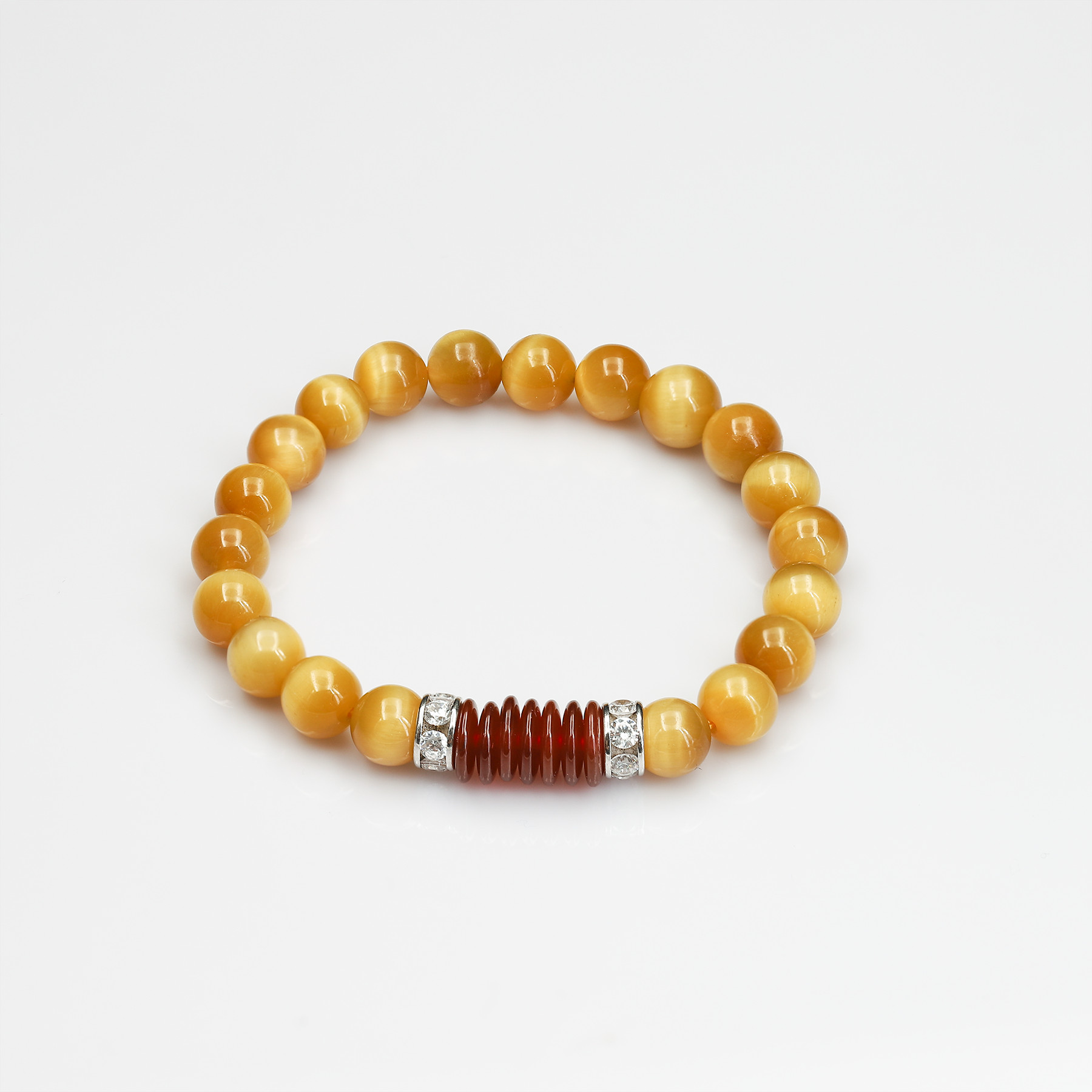 ✨Vòng tay phong thuỷ đá Mắt Hổ Vàng Tâm 8 ly mix Khoen Mã Não by Anqlo