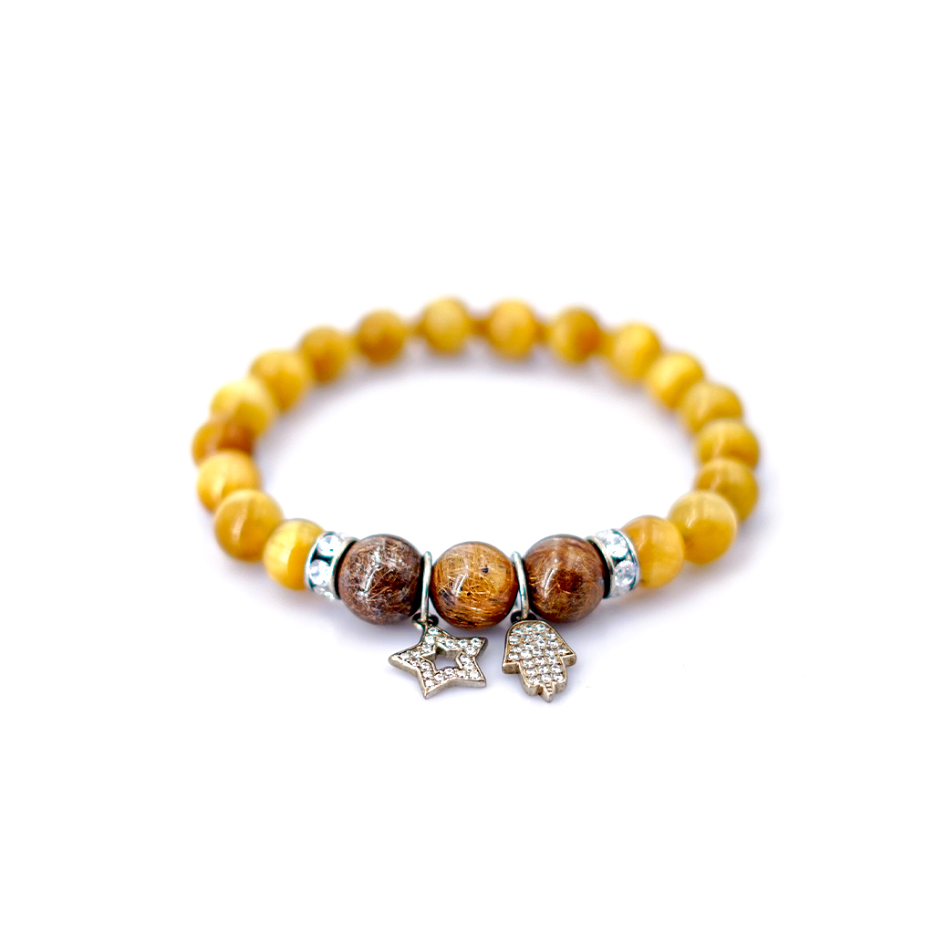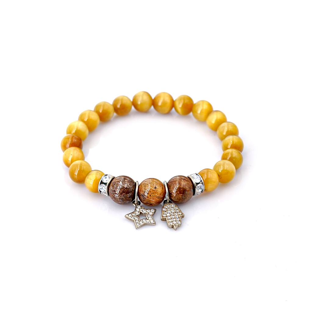 Vòng tay phong thủy Mắt hổ vàng 8mm + 3 Tóc nâu VIP by Anqlo là sản phẩm được chế tác tinh xảo, có độ hoàn thiện cao bởi các nghệ nhân lâu năm trong