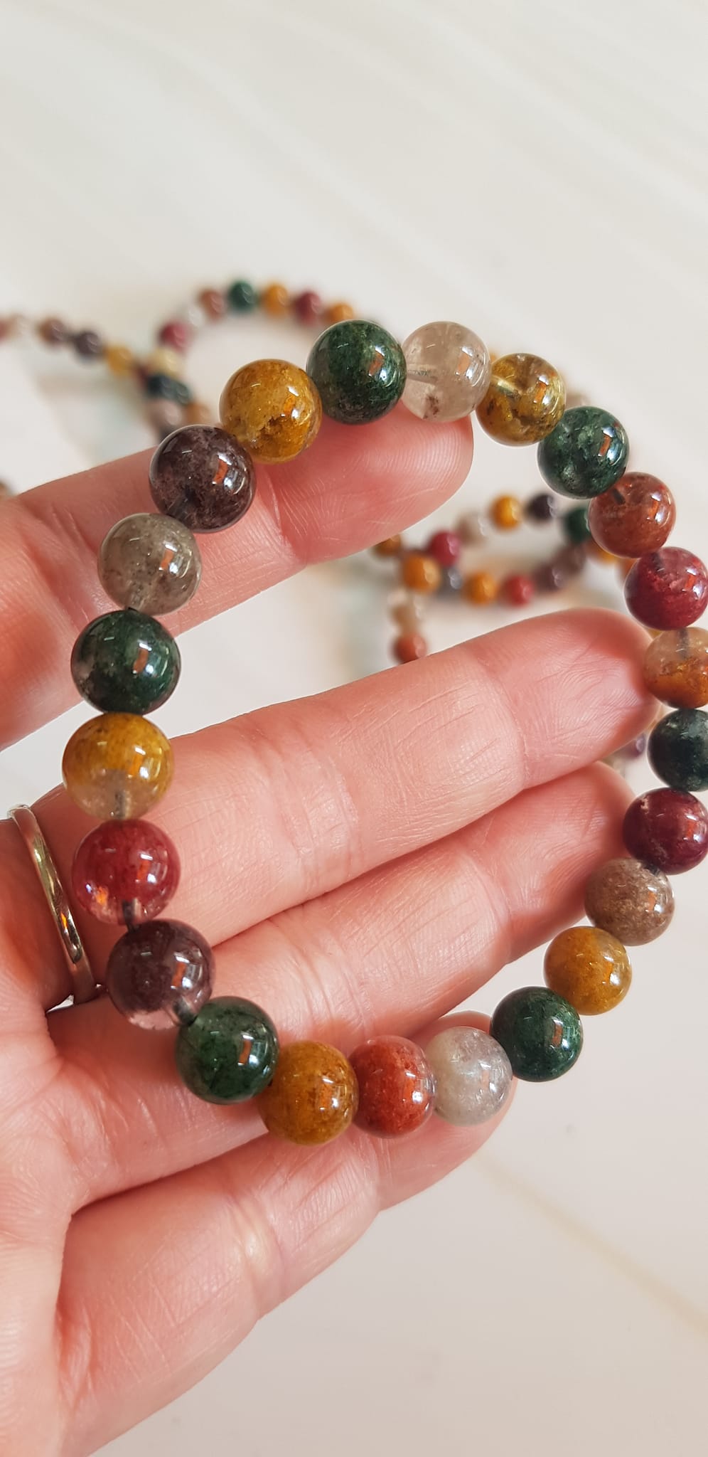 ✨Vòng tay phong thuỷ may mắn đá Thạch anh Ưu linh đa sắc Size hạt 8mm đá Ưu linh đẹp sang trọng của đá thạch anh tự nhiên đa sắc giúp xua tan mệt mỏi, đem đến năng lượng tích cực may mắn tài lộc cho gia chủ ,tăng sự quyến rũ sang trọng cho phái đẹp ạ