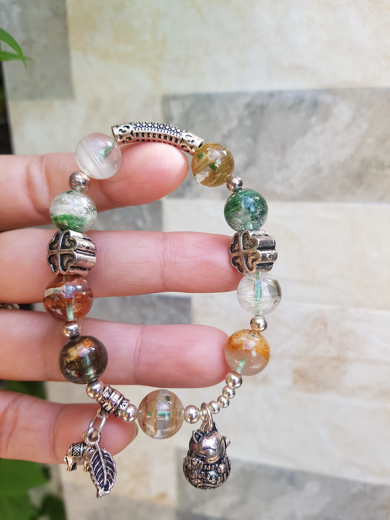 ✨Vòng tay phong thủy may mắn đá thạch anh Ưu linh tự nhiên Charm bạc kiểu hình chiếc lá mèo may mắn hoa đẹp lắm ạ Nữ đeo lên tay vừa đẹp vừa sang tốt cho sưc khỏe, may mắn và phong cách trẻ trung sang trọng ạ