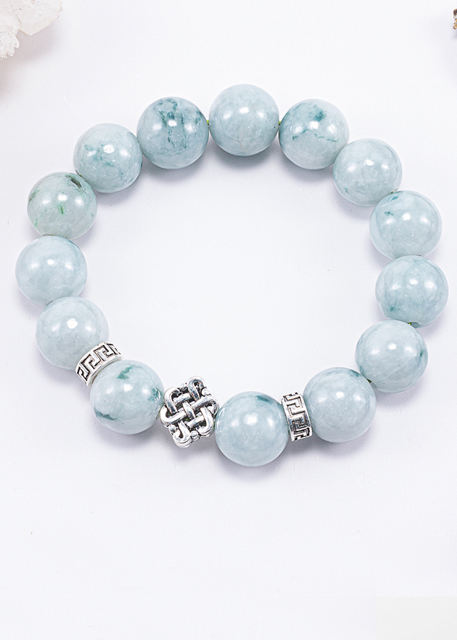 Từ lâu người ta đã biết đến đá cẩm thạch giống như một sản phẩm vô cùng tuyệt vời hướng bạn đến với những điều tốt đẹp, may mắn trong cuộc sống. Ngoài ra, viên đá còn giúp duy trì sự bình yên và thanh thản trong tâm trí. Vòng Tay Phong Thủy Nam Đá Cẩm Thạch Phỉ Thúy Phối Charm Kết Đồng Tâm Bạc (14mm) Mệnh Mộc, Hỏa được làm từ đá cẩm thạch.