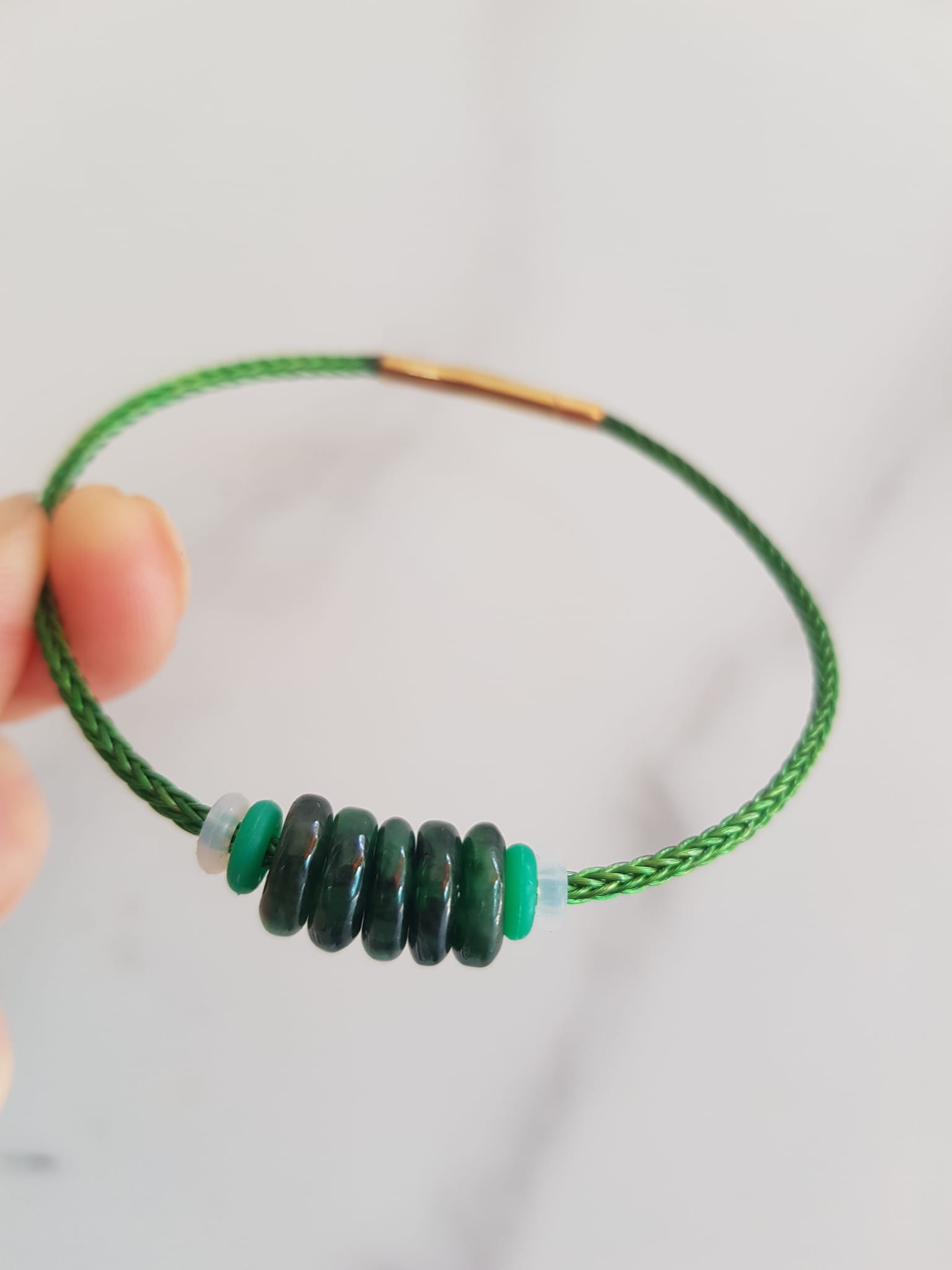 ✨Vòng tay phong thủy nữ charm kiểu 5 đồng tiền Xanh Đậm dây xanh may mắn Đá cẩm thạch tự nhiên xanh đậm đẹp phối dây màu xan có khoen chắc chắn Hợp nữ mệnh thủy mộc hỏa ạ