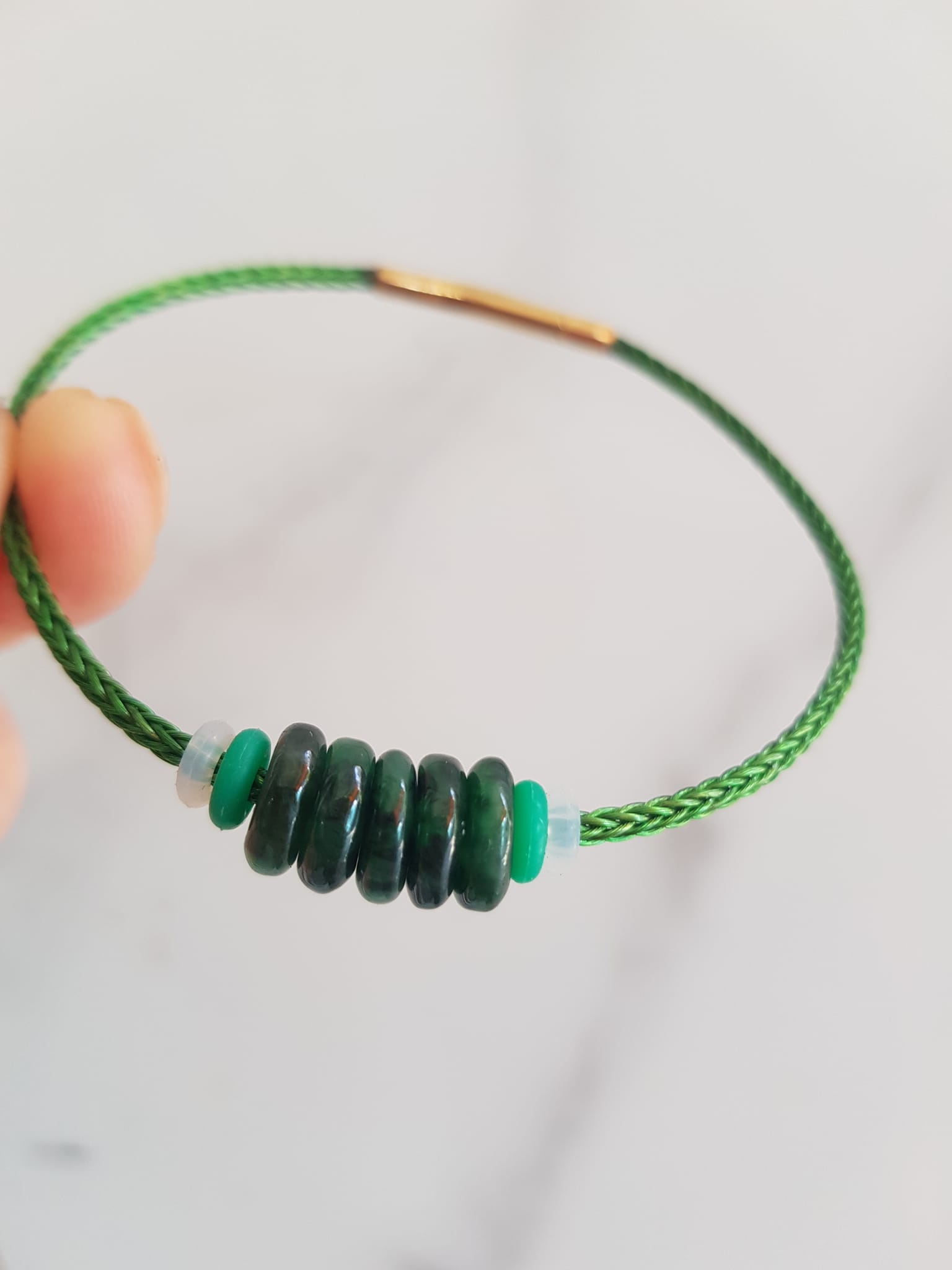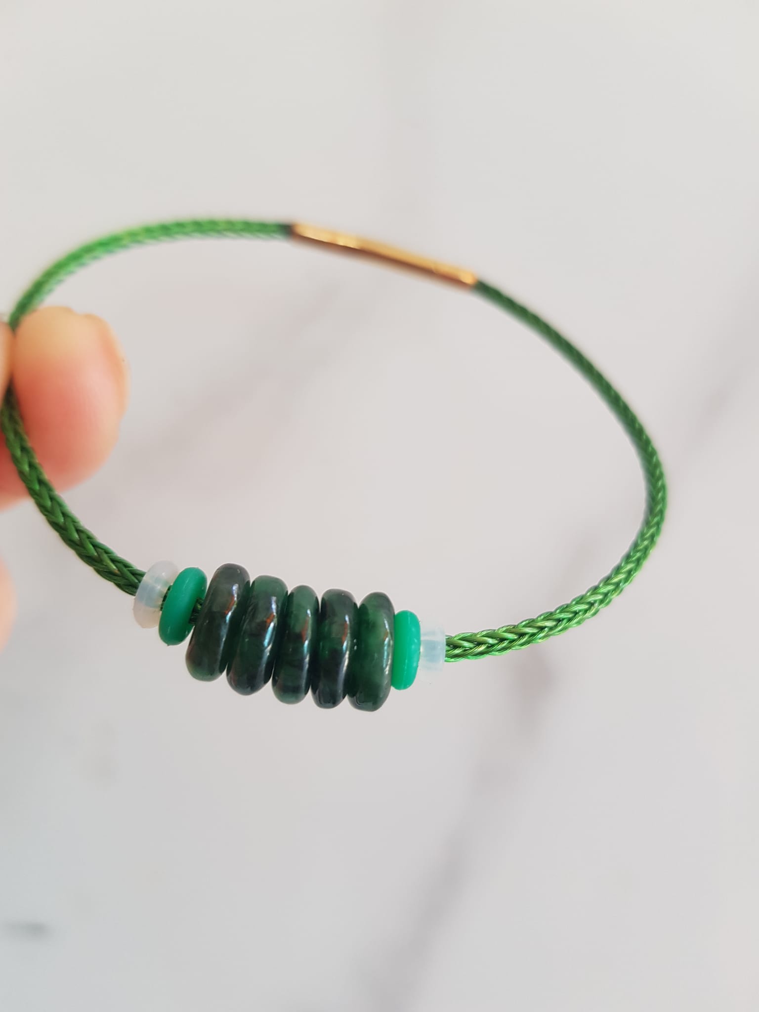 Vòng tay phong thủy nữ charm kiểu 5 đồng tiền Xanh Đậm dây xanh may mắn Đá cẩm thạch tự nhiên xanh đậm đẹp phối dây màu xan có khoen chắc chắn Hợp nữ mệnh