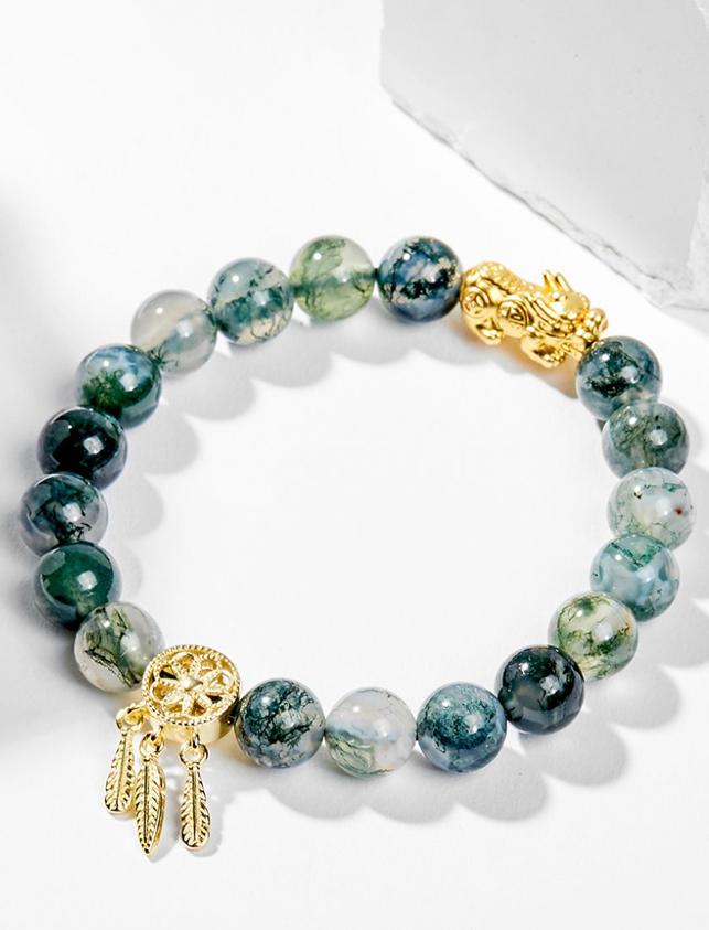 Từ lâu người ta đã biết đến đá băng ngọc thủy tảo giống như một sản phẩm vô cùng tuyệt vời khi kết hợp với thiền định để thanh tẩy tâm hồn. Từ đó giúp đem lại cho người sở hữu tài lộc, may mắn và bình an. Vòng Tay Phong Thủy Nữ Đá Băng Ngọc Thủy Tảo Phối Charm Dream Catcher Mạ Vàng 24K (8mm) Mệnh Mộc, Hỏa được làm từ đá băng ngọc thủy tảo.