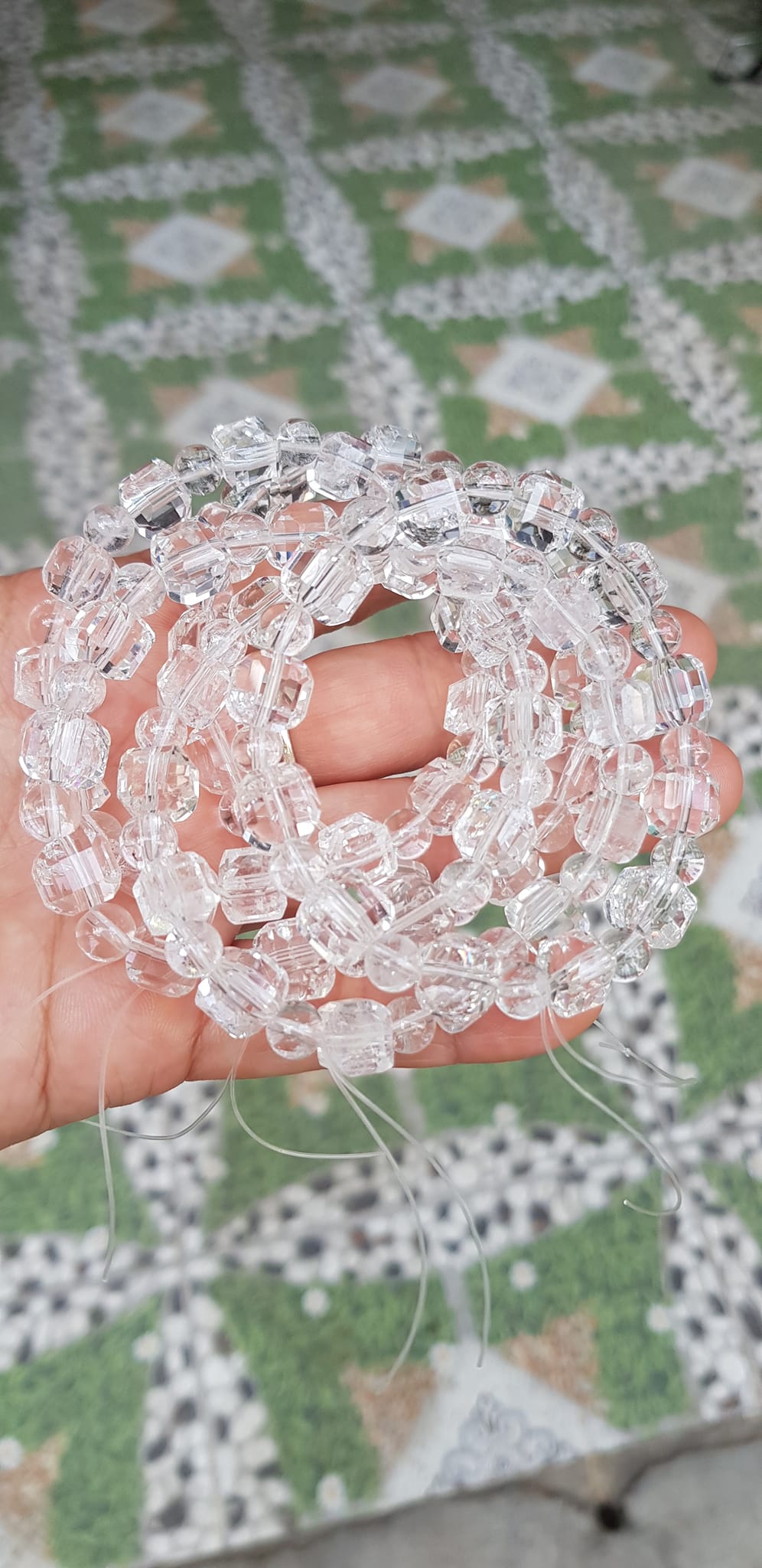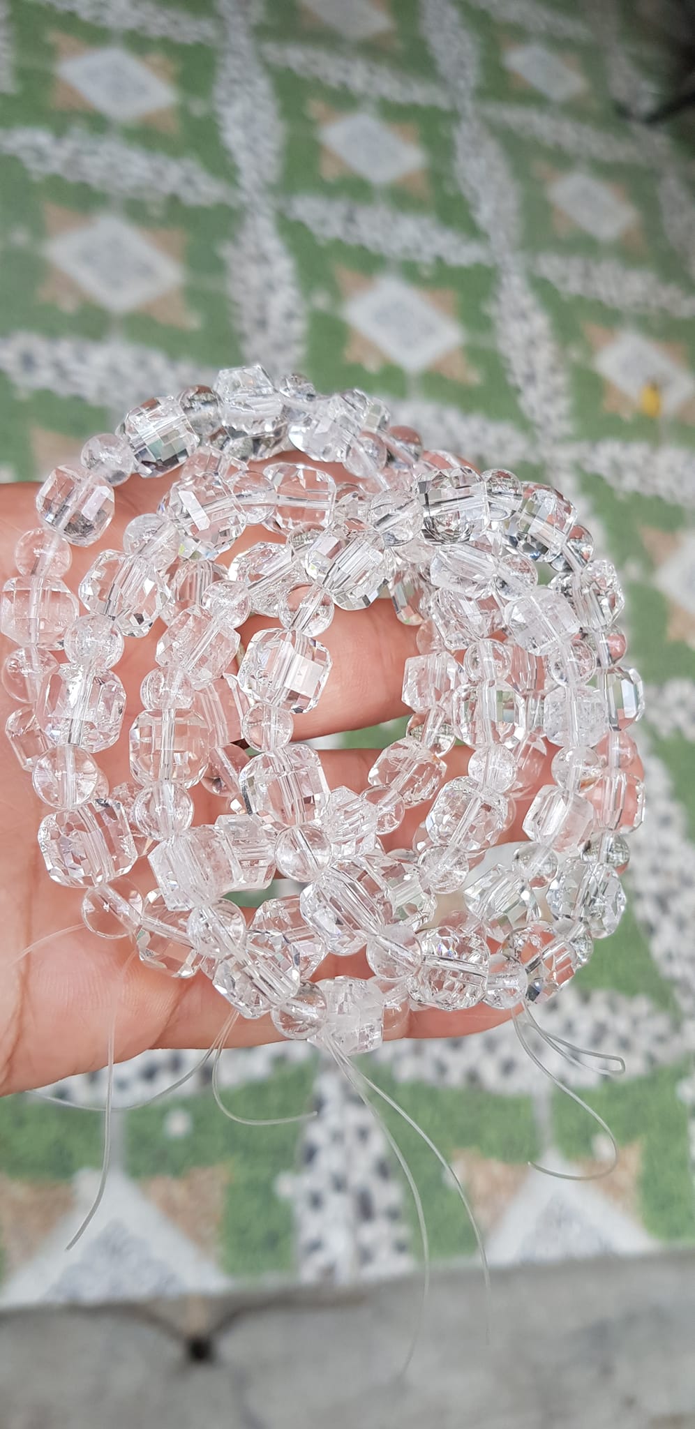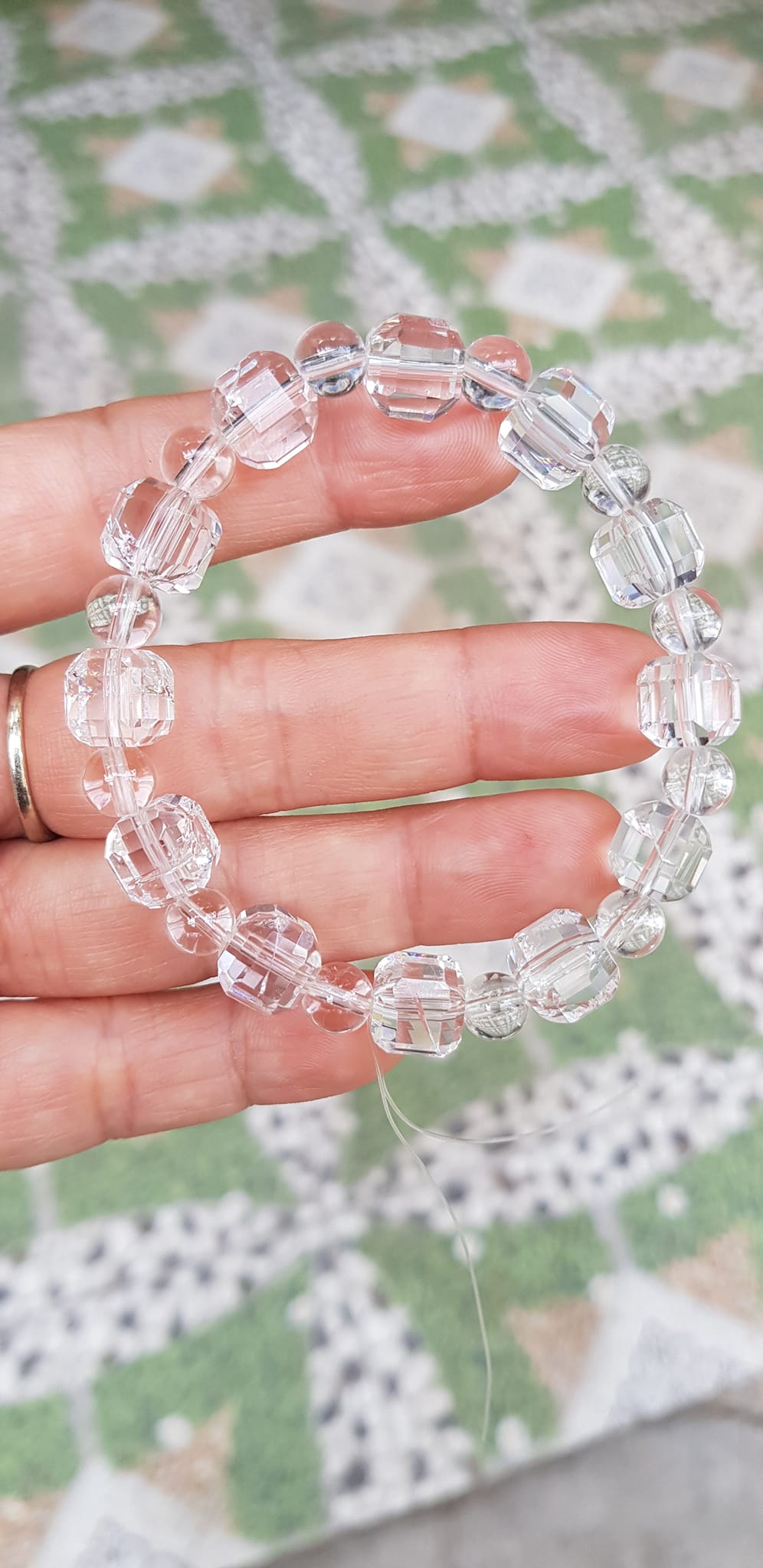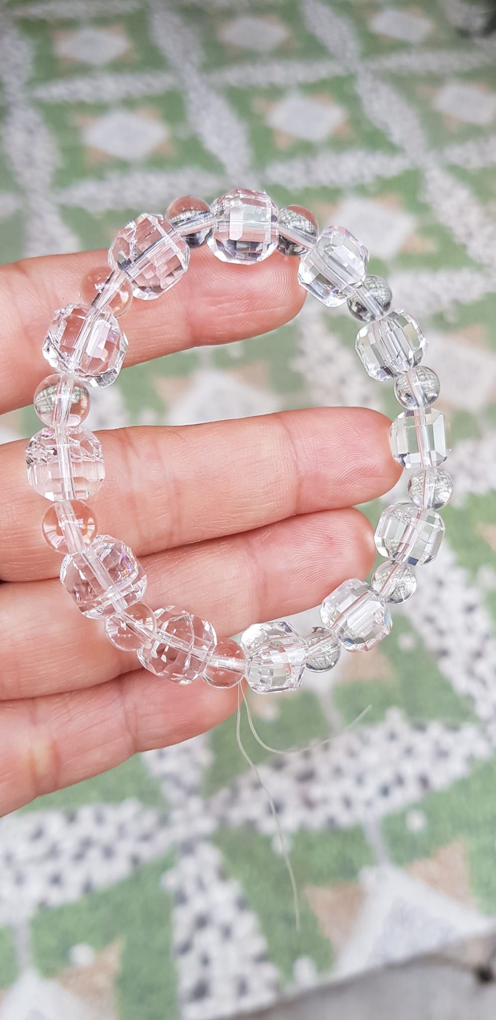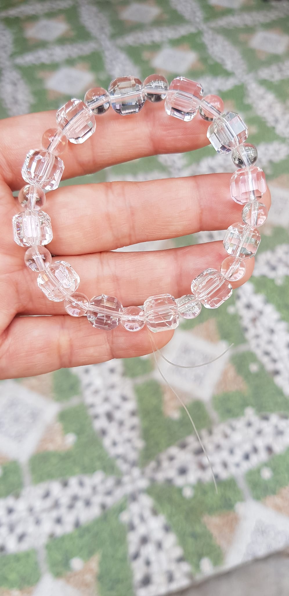 ✨ Vòng tay phong thuỷ nữ đá thạch anh trắng trong tự nhiên kiểu vuông giác tròn Size hạt vuông 10mm hạt tròn nhỏ 6mm Nữ mệnh kim mệnh Thủy đeo hợp may mắn tốt sức khoẻ công việc ạ