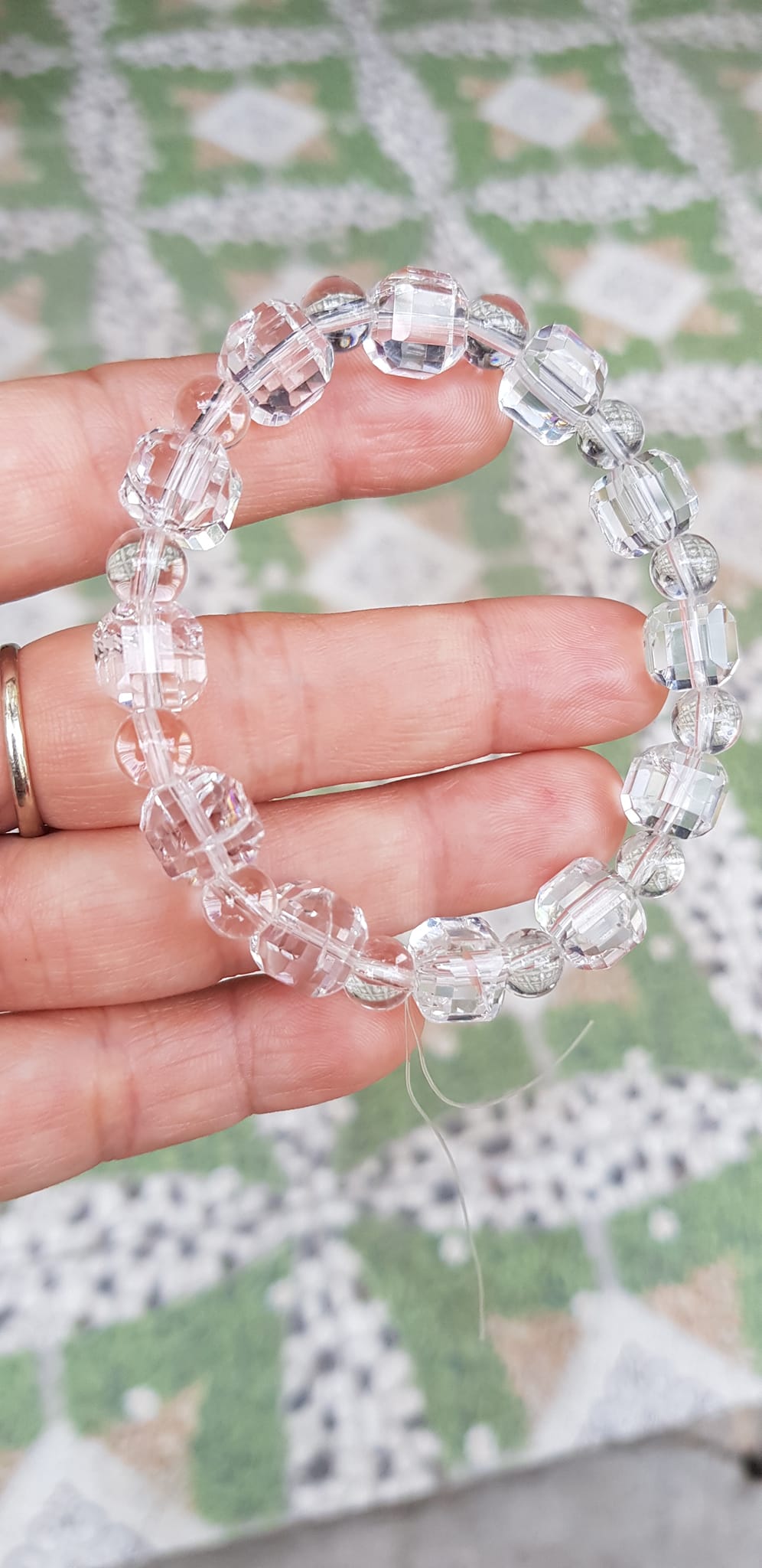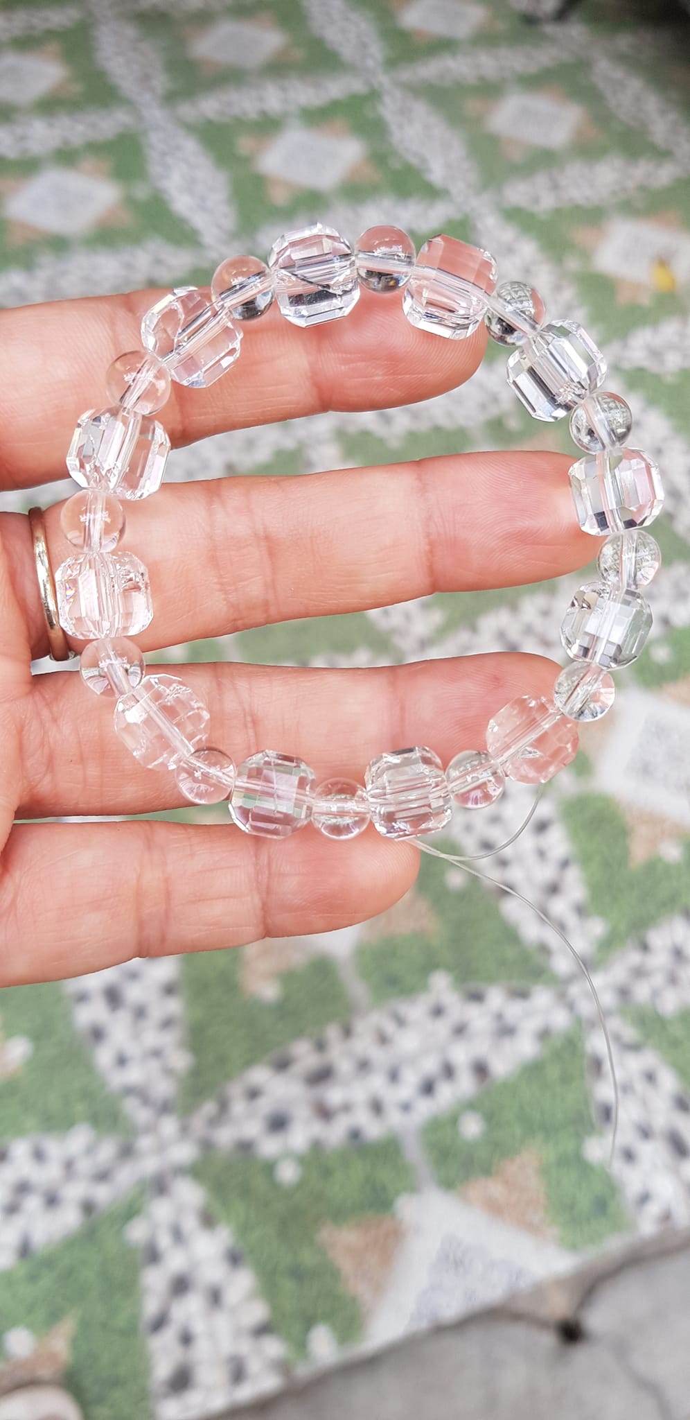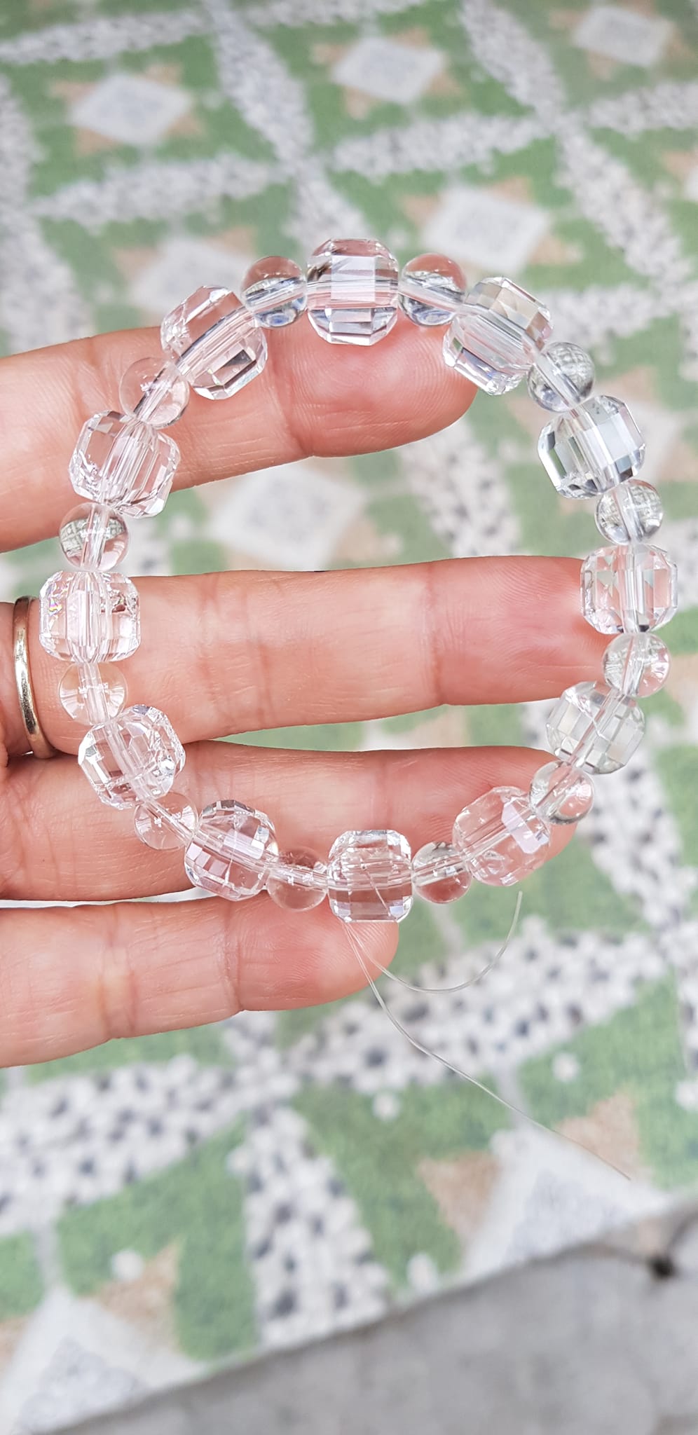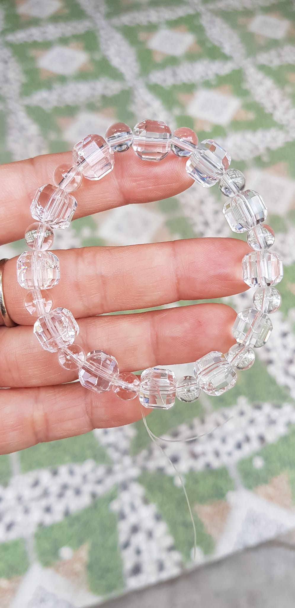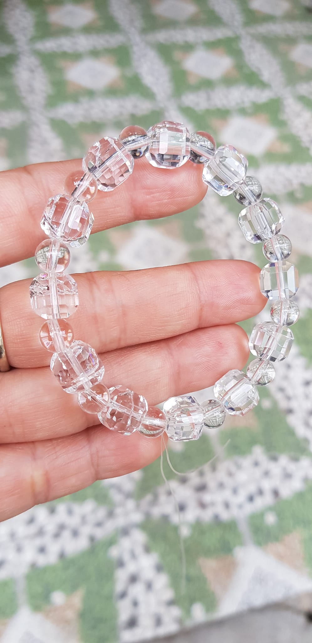 ✨ Vòng tay phong thuỷ nữ đá thạch anh trắng trong tự nhiên kiểu vuông giác tròn Size hạt vuông 10mm hạt tròn nhỏ 6mm Nữ mệnh kim mệnh Thủy đeo hợp may mắn tốt sức khoẻ công việc ạ