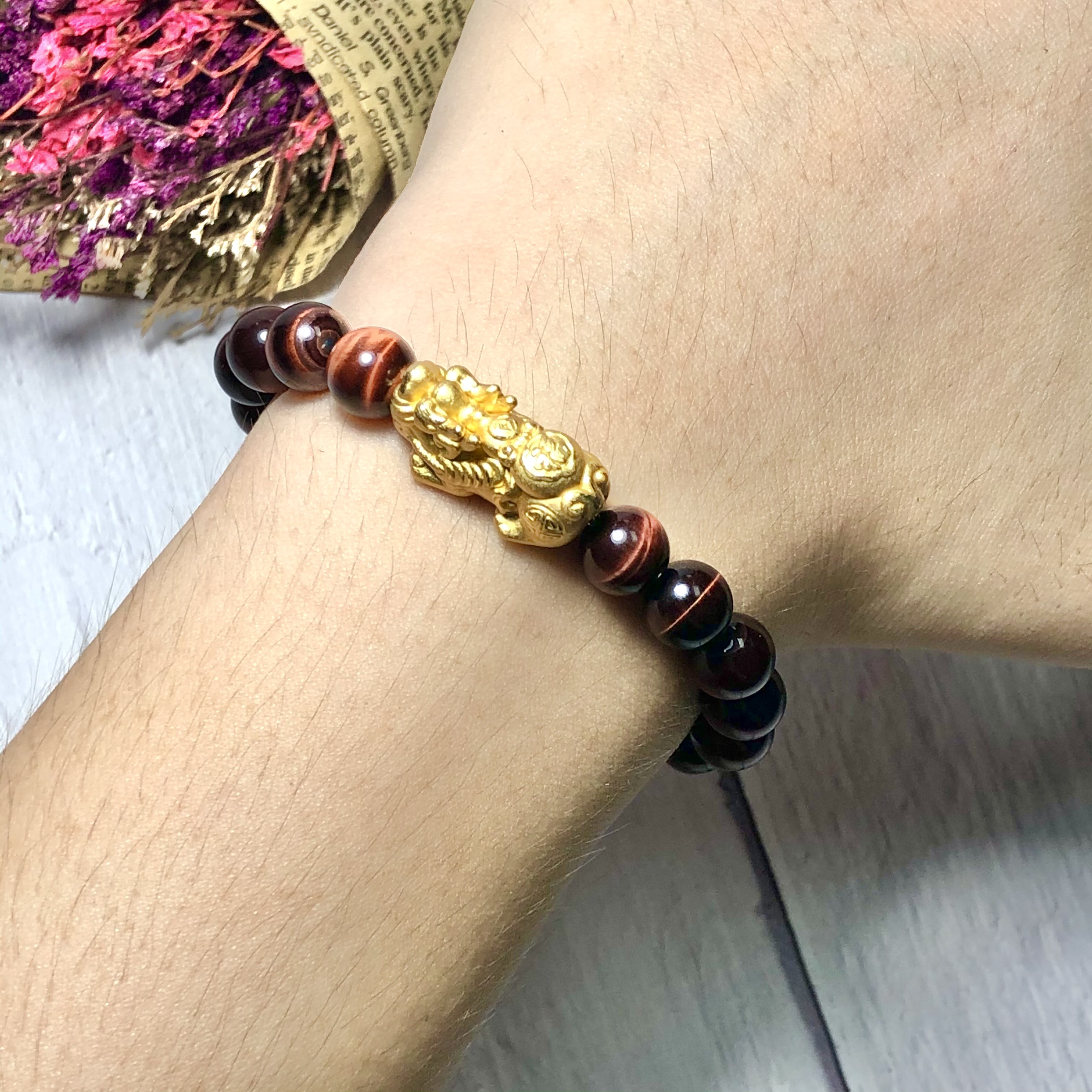 Vòng tay Thạch Anh Mắt Hổ nâu đỏ 14mm mix tỳ hưu bạc Loại trang sức: vòng đá phong thủy kết hợp charm bạc - Xuất xứ: Brazil - Kích thước: 14mm - Chuẩn đá: 5A - Kiểu dáng: vòng hạt