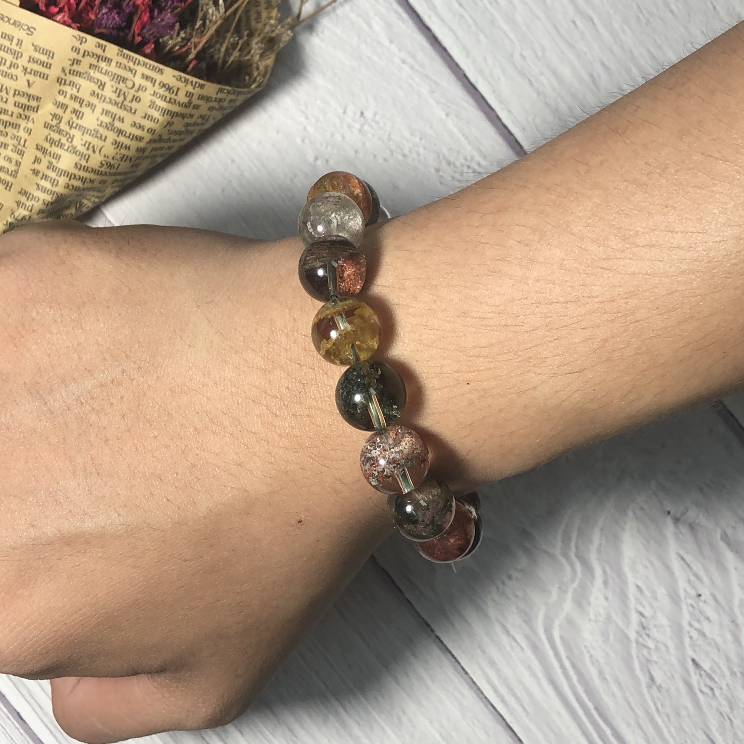 Vòng tay Thạch Anh Ưu Linh hoa đa sắc 12mm cao cấp chuẩn 6A - Chất liệu: Thạch Anh Uu Linh tự nhiên. - Màu sắc: hỗn hợp tự nhiên (không qua xử lý). - Kích thước: 12mm - Kiểu