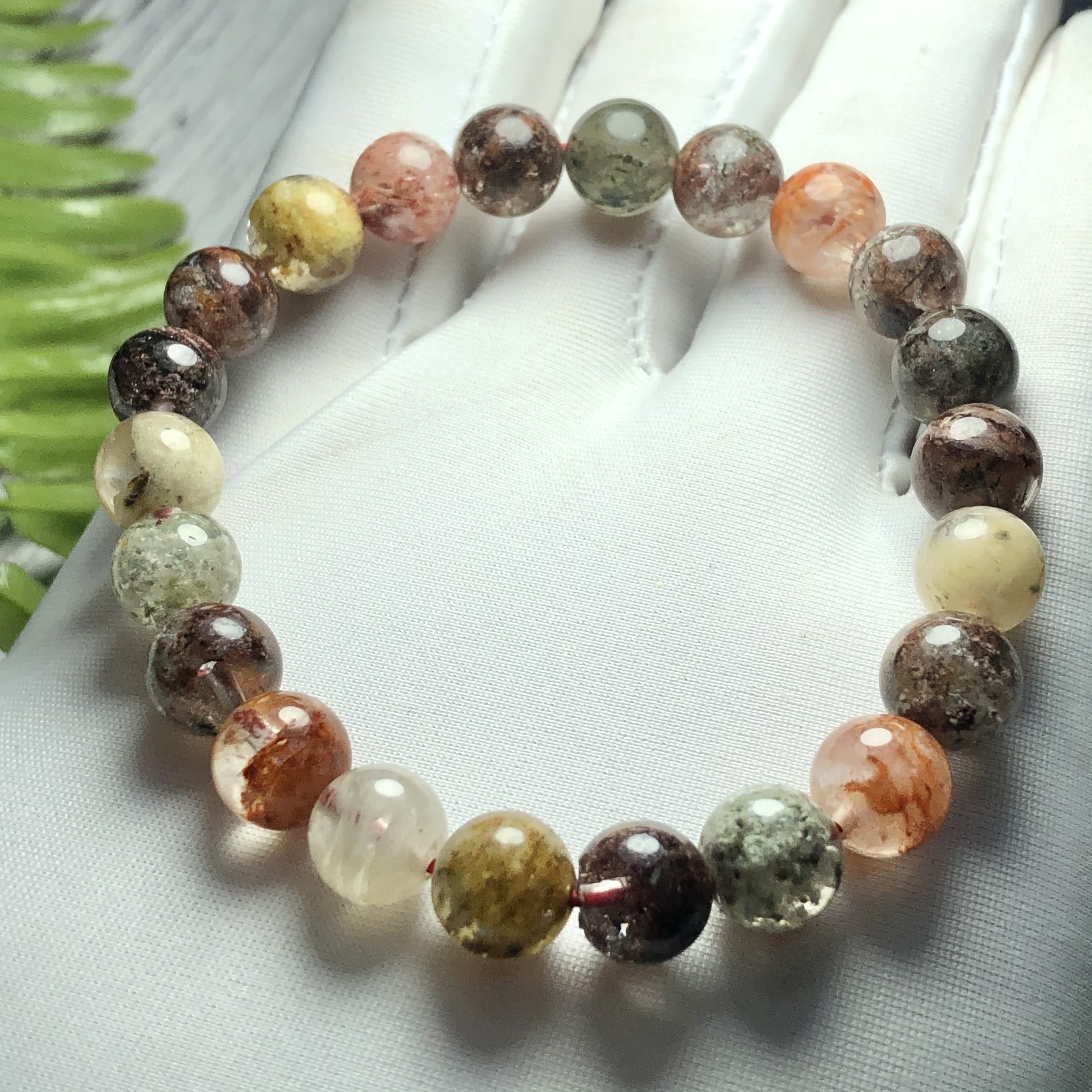 🩸🌺🩸Vòng tay phong thuỷ may mắn đá Thạch anh Ưu linh đa sắc tự nhiên đẹp 8mm 🌻🌻Shop Sunny Quận 8 #8mm