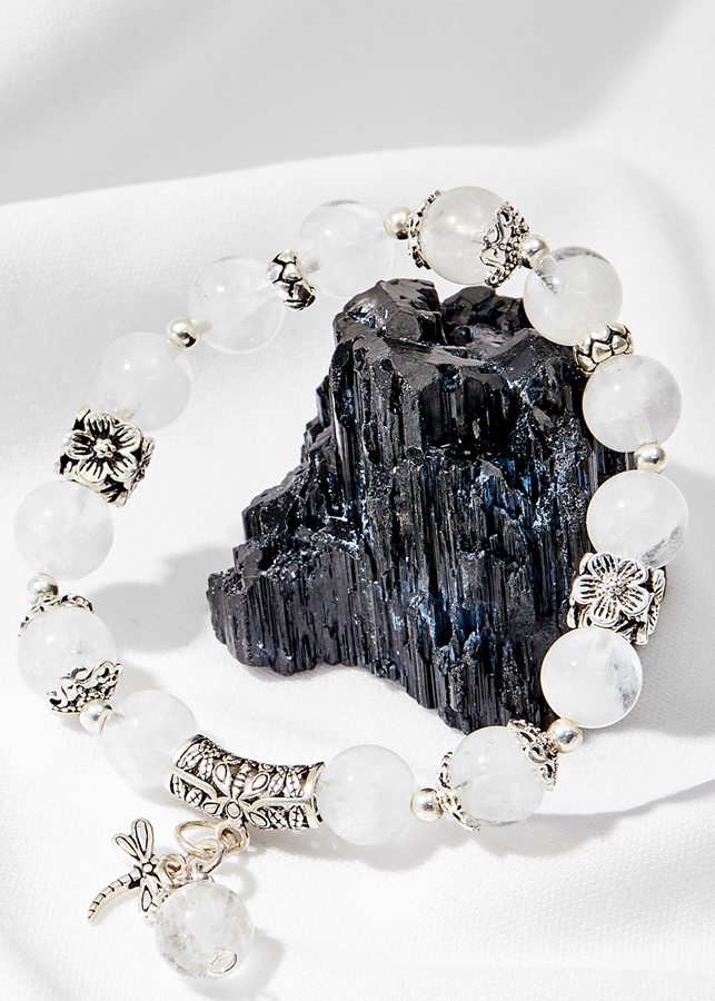 Vòng Tay Thạch Anh Ưu Linh Trắng Phối Chuồn Chuồn còn được ví như linh thạch giúp trí tuệ thông minh, minh mẫn giúp mọi quyết định đưa ra đều sáng suốt và mọi sự đều thành công như mong muốn. Riêng với những người kinh doanh hay buôn bán, thì việc sở hữu loại đá này sẽ làm cho công việc suôn sẻ, vượng khí, tài lộc ngày càng nhiều giúp việc kinh doanh được thuận buồm xuôi gió.