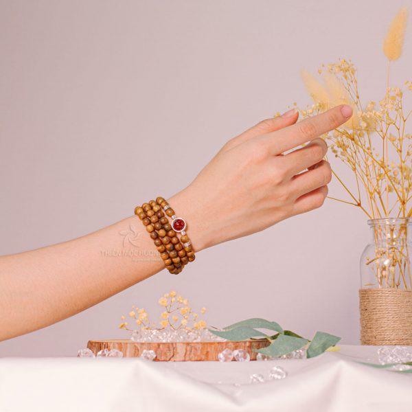 Trên tay Tràng hạt Trầm hương 108 hạt mix Charm Bạc S925 đá đỏ tại Henry Jewels
