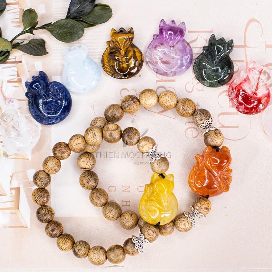 ✨Vòng tay trầm hương tự nhiên Hồ Ly đá phong thủy - Thiên Mộc Hương - Trầm Tốc Lào - May mắn tình duyên - Hạnh phúc