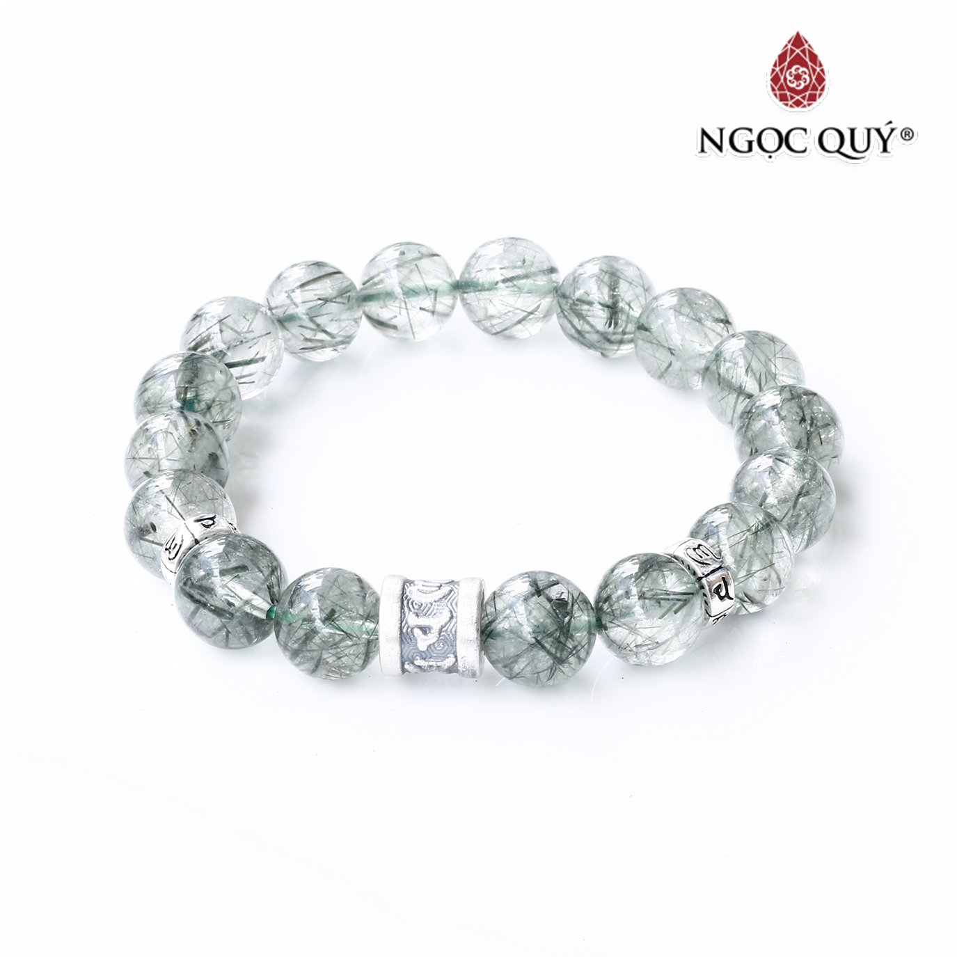 ✨Vòng thạch anh tóc xanh phối charm lục tự bạc mệnh hỏa, mộc - Ngọc Quý Gemstones