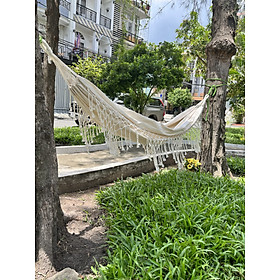 - Đặc biệt võng vải được thiết kế với viền tua rua hai bên, được đan thắt thủ công bởi đôi bàn tay khéo léo của những nghệ nhân tay nghê cao, cùng với chất liệu sợi cotton màu mộc tự nhiên tạo nên chút thơ mộng, mộc mạc cho chiếc võng