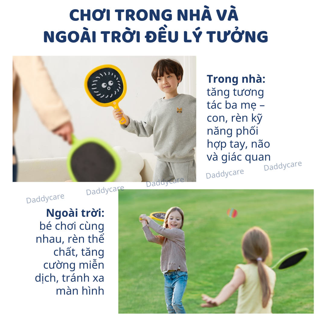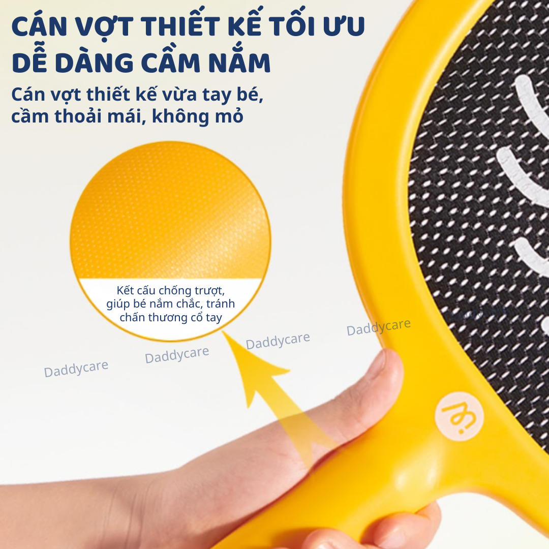 Vợt màu vàng và xanh nõn chuối bắt mắt, giúp trẻ cảm thấy vui vẻ và thích thú hơn khi chơi.