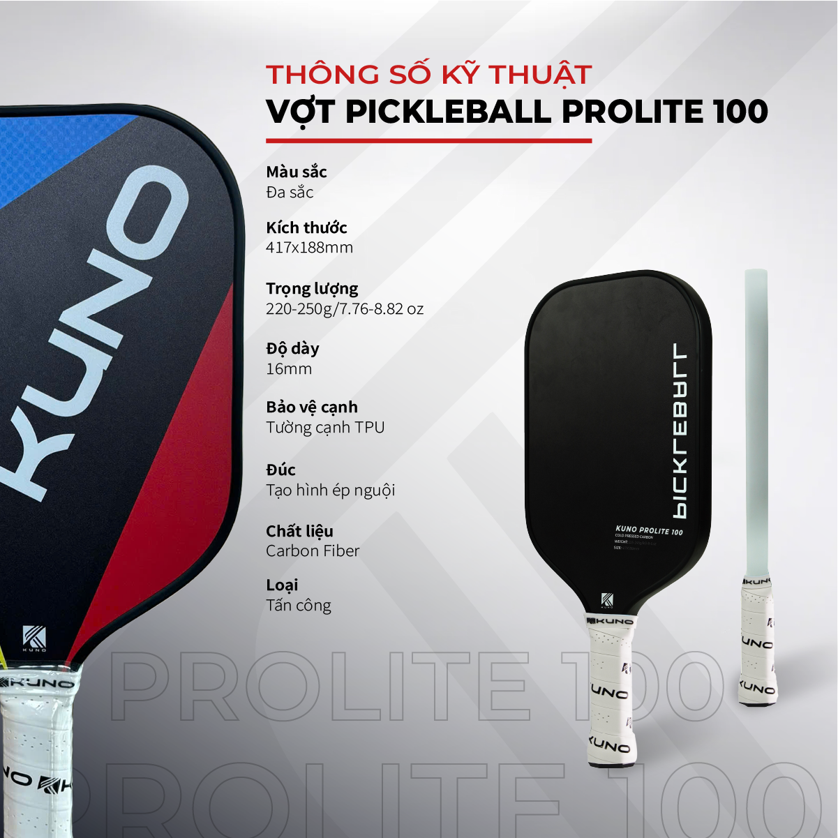 ✨Vợt Pickleball Kuno Prolite 100 Chính Hãng, lối đánh tấn công, phòng thủ, sức chịu lên tới 70kg