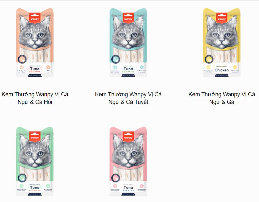 Súp Thưởng Kem thưởng WANPY CREAMY TREAT Cho Mèo Thơm Ngon Gói 70g (5 tuýp x 14g)