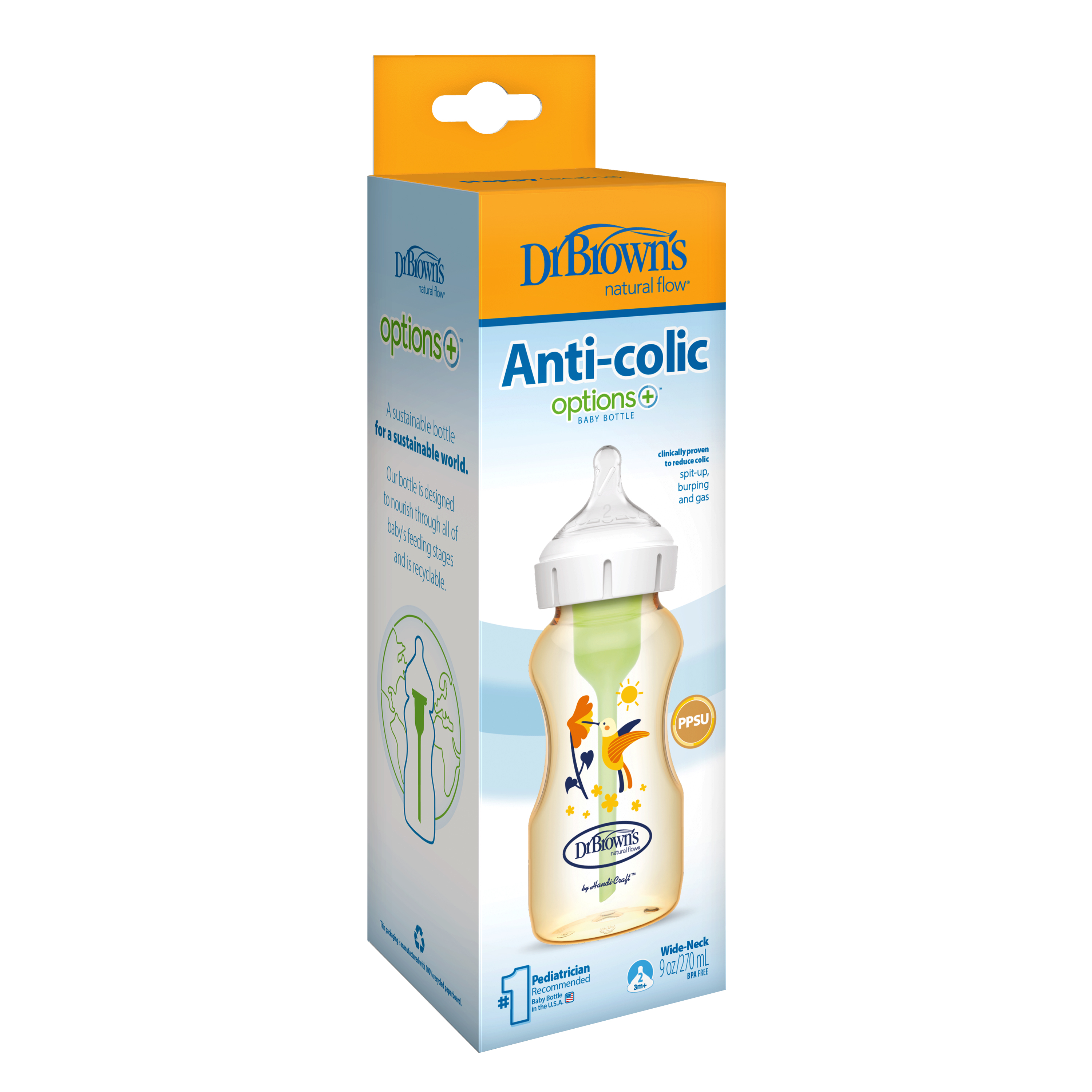 ✨[ WB91620 ] Bình sữa tùy chọn cổ rộng nhựa PPSU, 270ml - Dr.Brown's