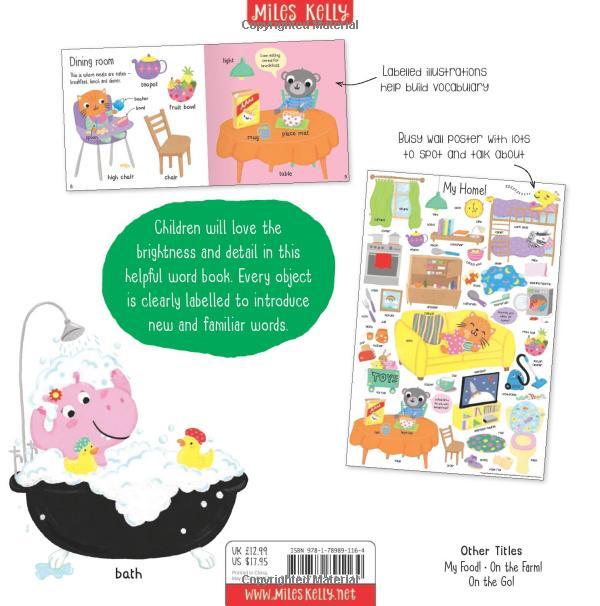Packed with bright, engaging illustrations and lots of labels, little ones will love exploring familiar objects around the house, room by room. With loads to spot and talk about on every page, children are encouraged to practise their vocabulary skills as they learn new words about everyday topics. Fun questions throughout explore numbers, colours and shapes.