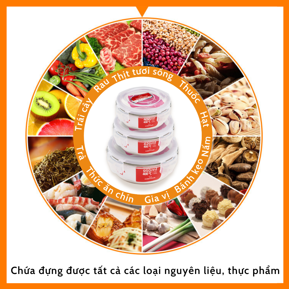 Chất liệu : Thủy tinh chịu nhiệt,nắp nhựa PPMàu sắc : Trắng trongThương hiệu : COBA'COOKKhông có BPA ( chất gây ung thư, vô sinh, dậy thì sớ)Chịu nhiệt tới 400 độ CCó lớp silicon bên trong nắp c...