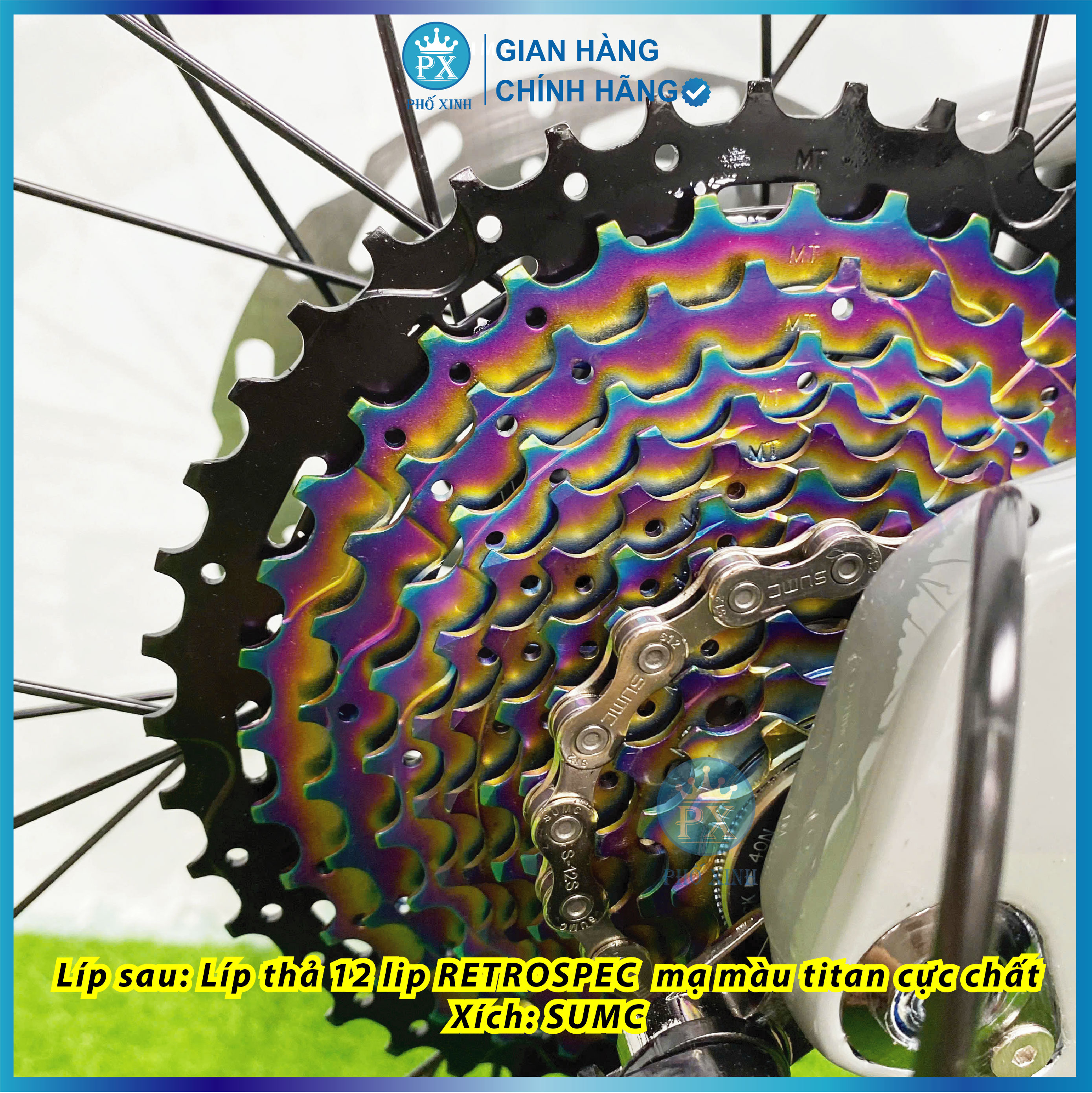 – Bộ truyền động R E T R O S P E C 2 đĩa trước, 12 líp sau mang đến 24 tốc độ linh hoạt, phù hợp với mọi địa hình.