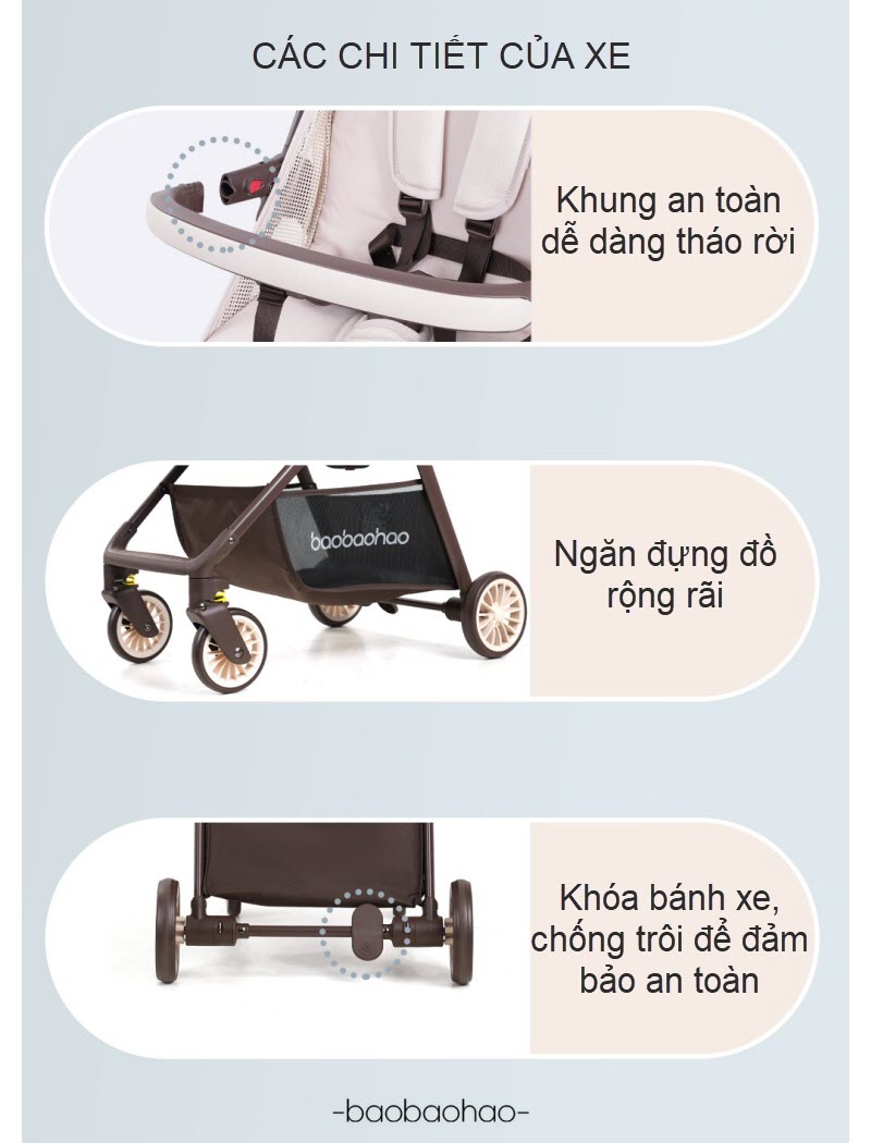 Xe đẩy gấp gọn Baobaohao là một sản phẩm đáng chú ý trên thị trường, được thiết kế đặc biệt với tiêu chí tiện lợi và tiết kiệm không gian. Với khả năng gấp gọn