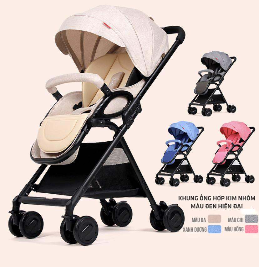 Xe đẩy Belecoo Travel 2 chiều 3 tư thế siêu nhẹ ️ Xe dáng thể thao gầm cao chống bụi và được làm bằng hợp kim nhôm vô cùng vững chắc, chịu trọng lượng lên
