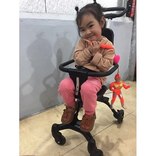 Ghế ngồi xoay được 2 chiều, cả 2 chiều đều có ghế để chân tiện lợi kèm đai an toàn.