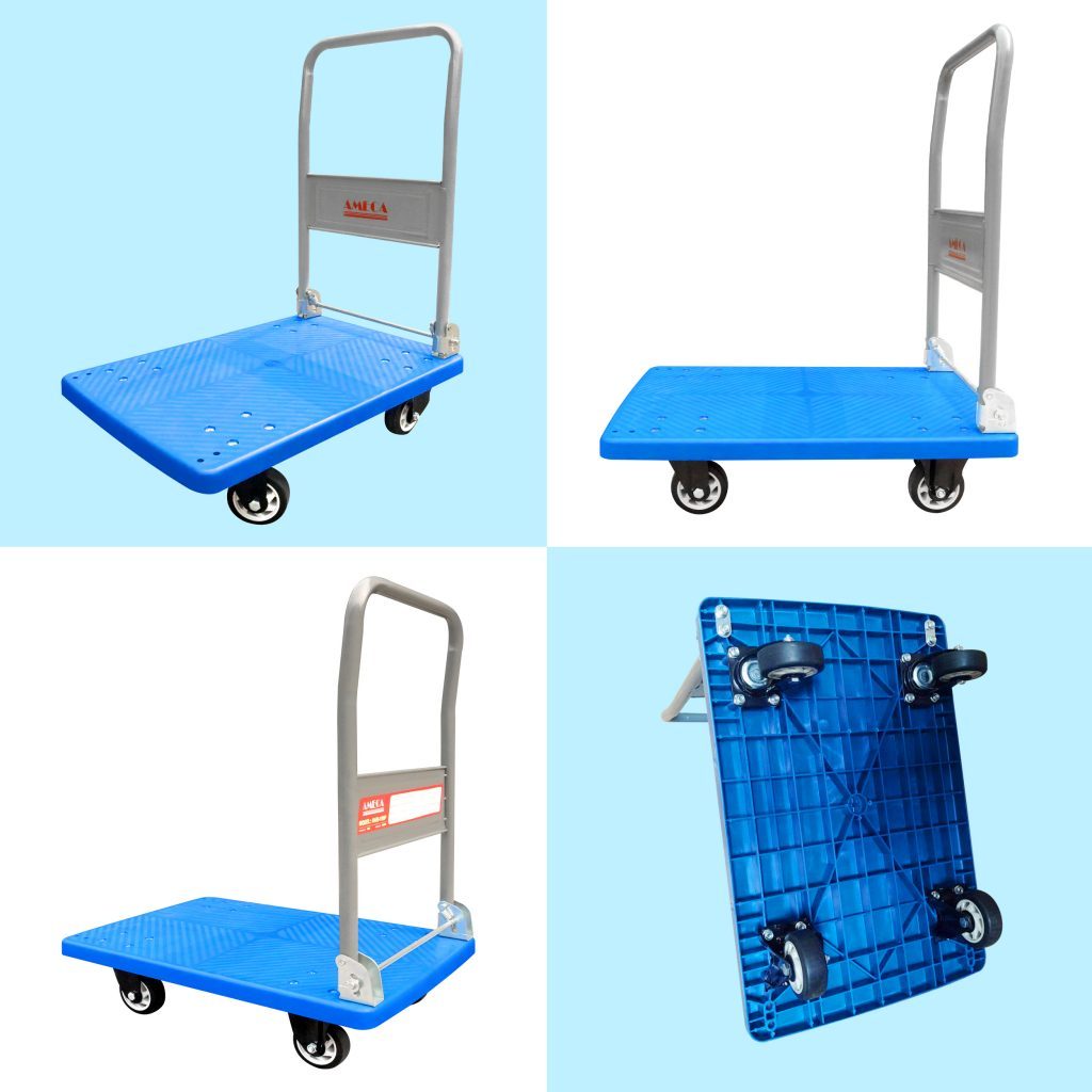 ✨Xe Đẩy Hàng 4 Bánh Ameca HAM-300P- Sàn nhựa, Khung Thép, Giảm ồn, Gấp gọn, tải trọng 300kg - bảo hành 12 tháng