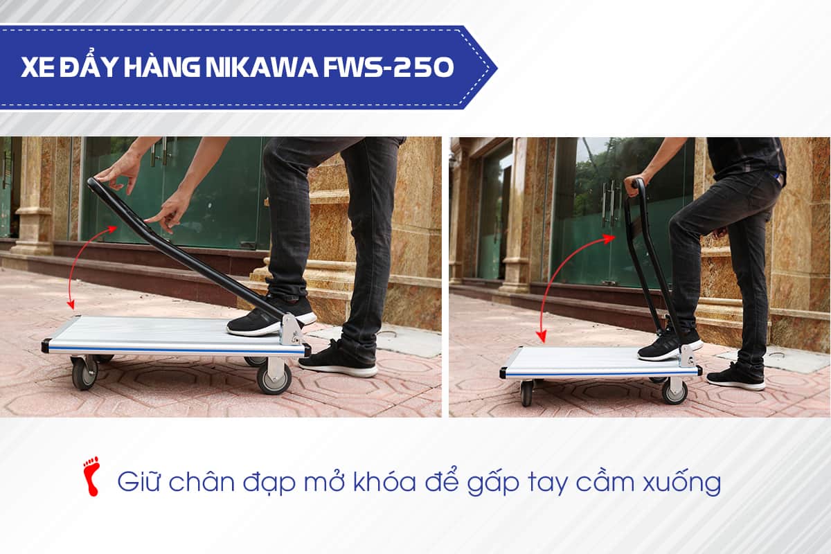 ✨Xe đẩy hàng 4 bánh chống ồn Nikawa FWS-180 sàn nhôm tay cầm thép gấp mở tiện lợi tải trọng 180kg