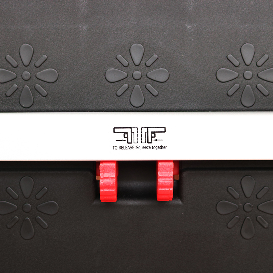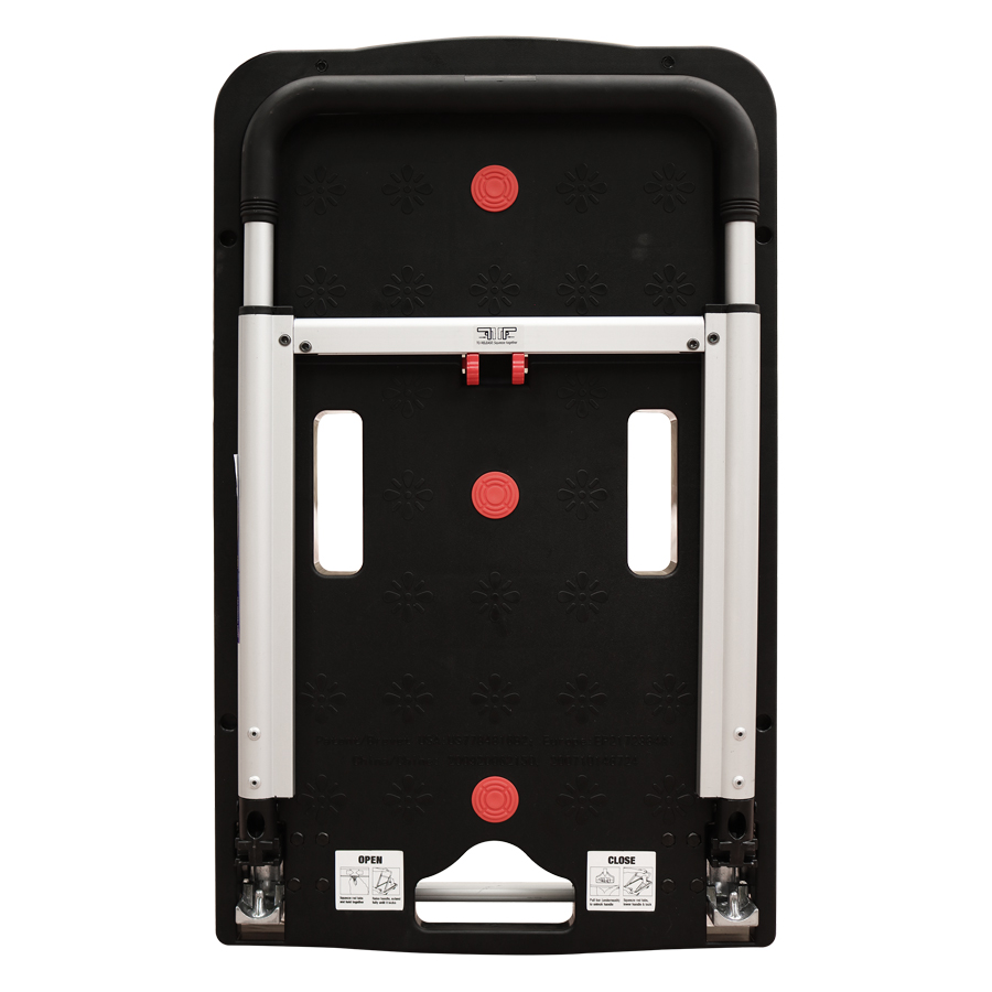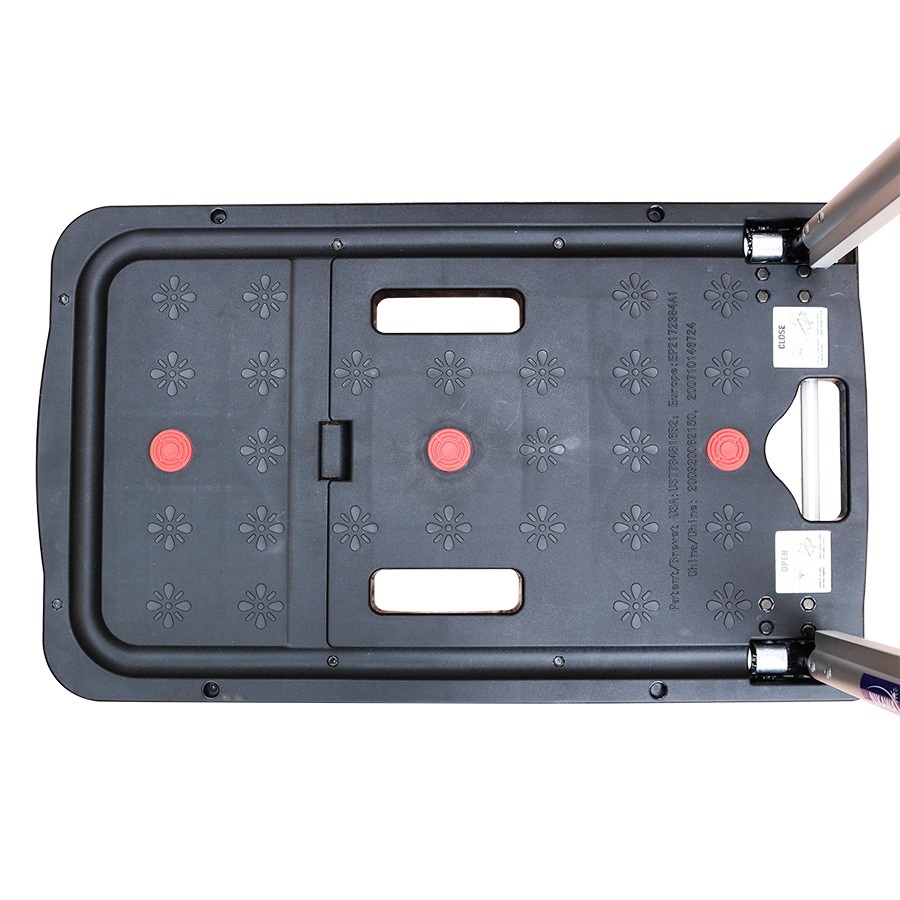 • Mặt sàn được làm từ nhựa PP, tăng ma sát nhằm đảm bảo hàng hóa không bị rơi khi di chuyển.