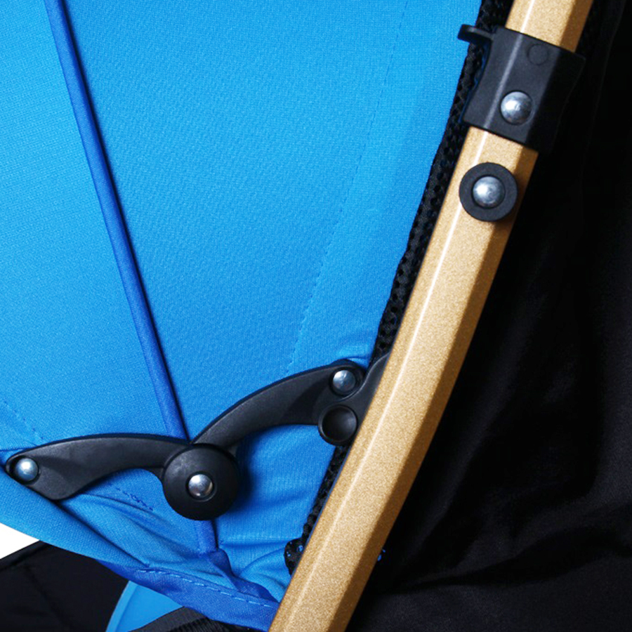 Xe được thiết kế là xe đẩy siêu nhẹ và gọn. Có thêm mái che ở bên trên.