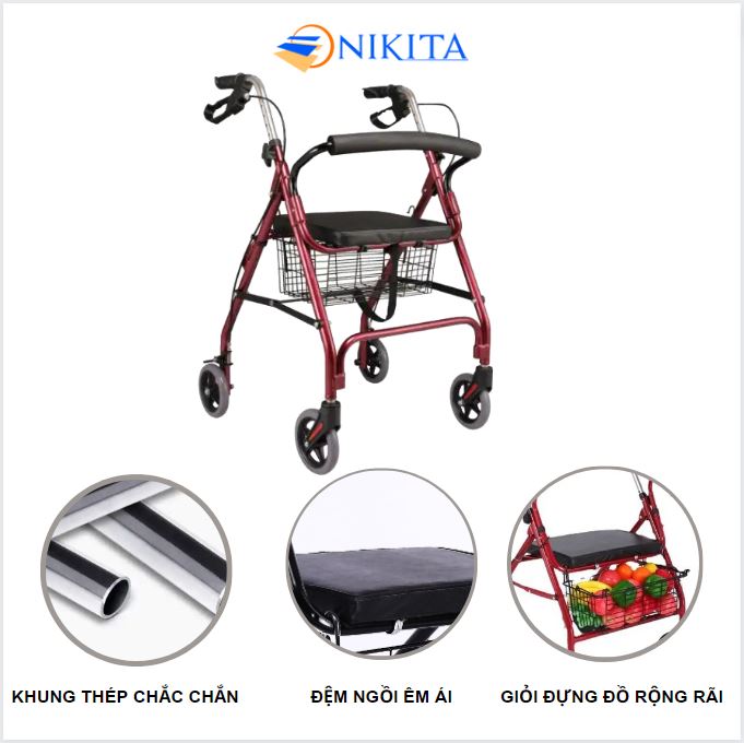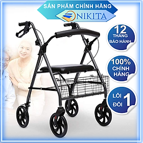 Xe tập đi bốn bánh cho người già có ghế ngồi, có giỏ đựng đồ, gấp gọn khi không sử dụng, chính hãng Nikita Xe tập đi có bánh lăn được thiết kế cổ điển