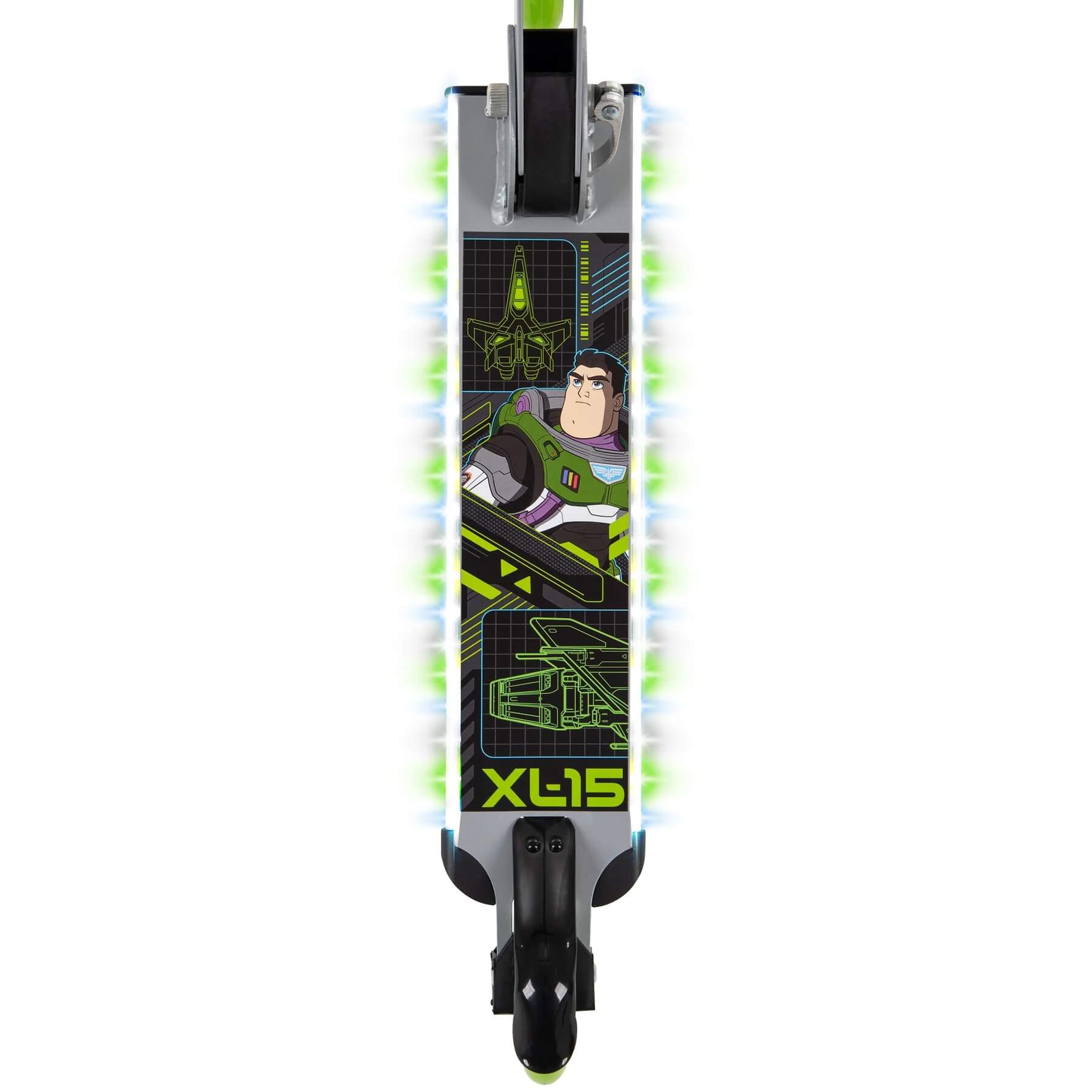 Xe Scooter Inline Electro-light Mới - Mang Niềm Vui Với Đèn LED! - Phần đế bằng thép chắc chắn được trang trí với hình ảnh đầy màu sắc của Disney Buzz Lightyear. - Khung thép nâng cao