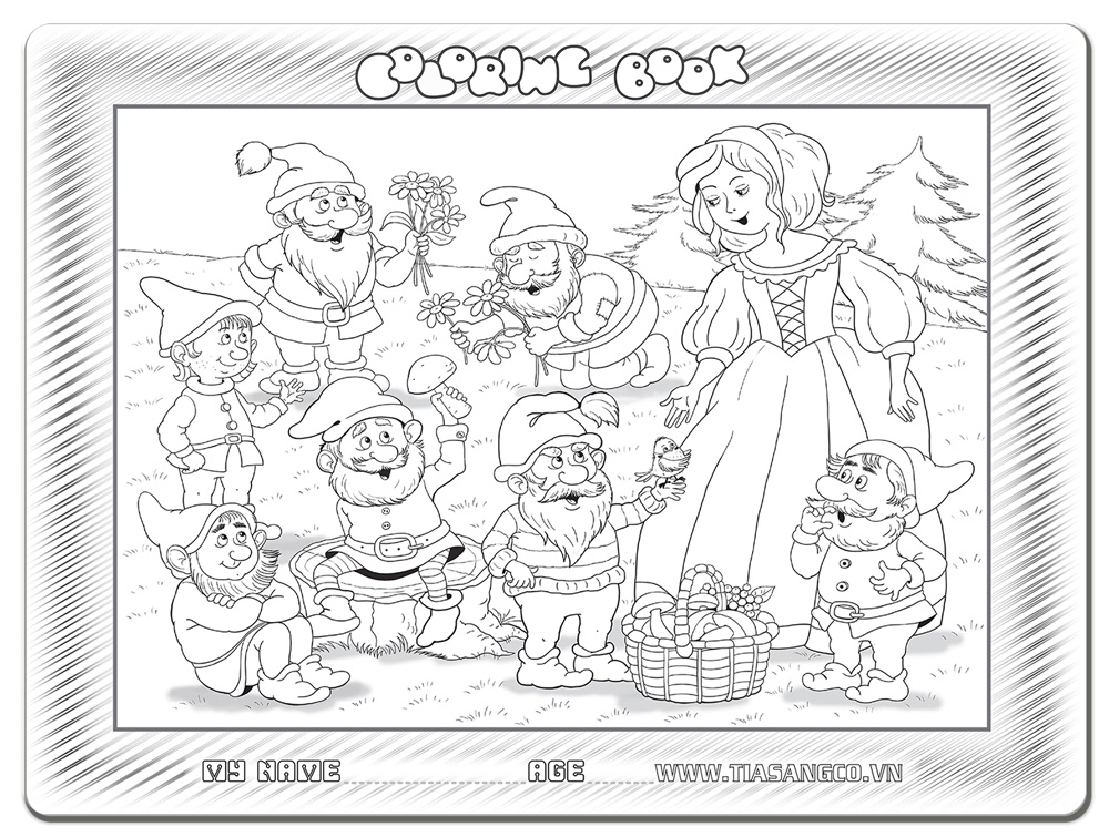 Tranh tô màu Bạch Tuyết và 7 Chú Lùn