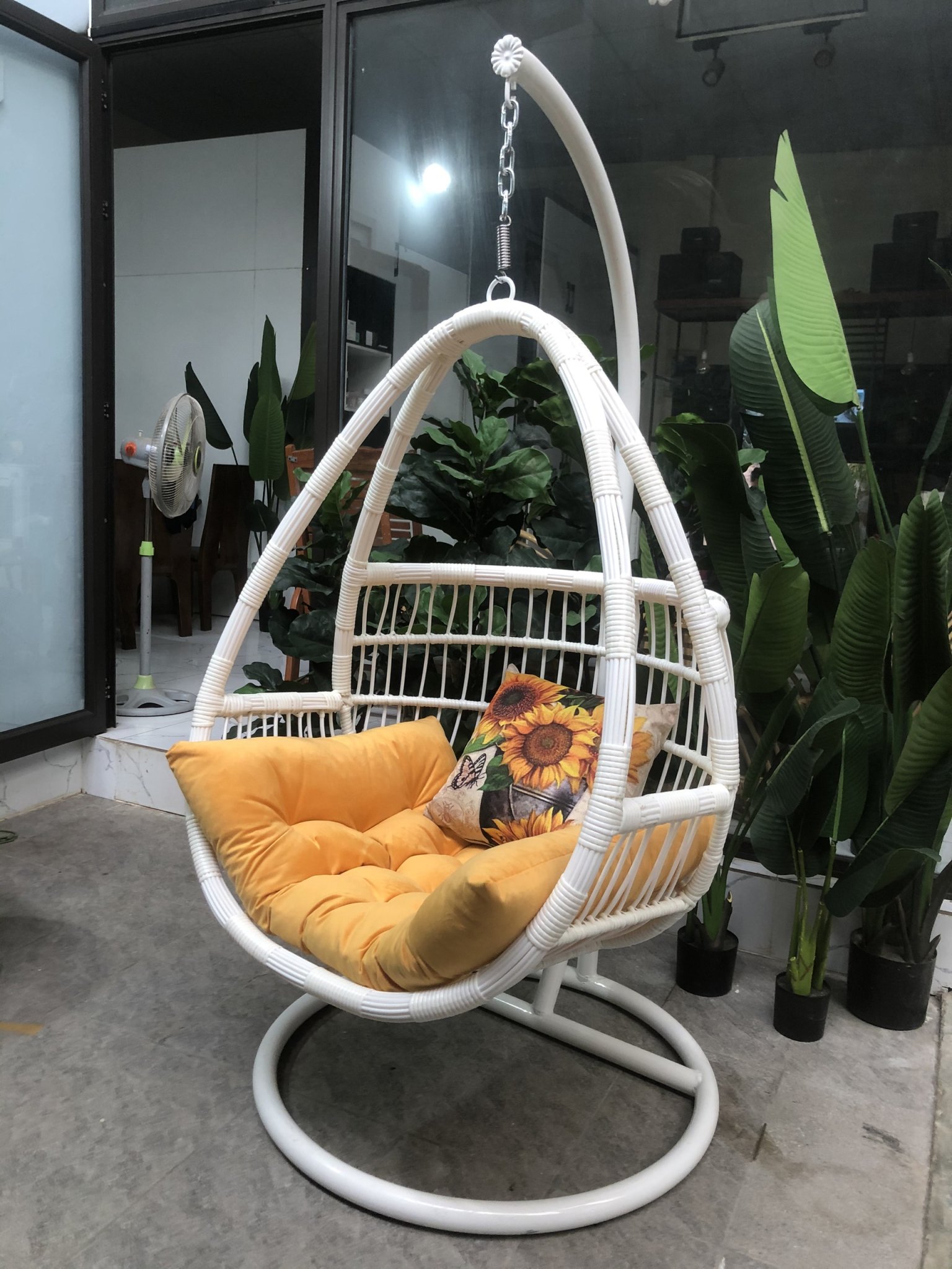 ✨Xích đu đơn bo cạp trắng XĐN7 chất liệu khung sắt mây nhựa cao cấp juno sofa
