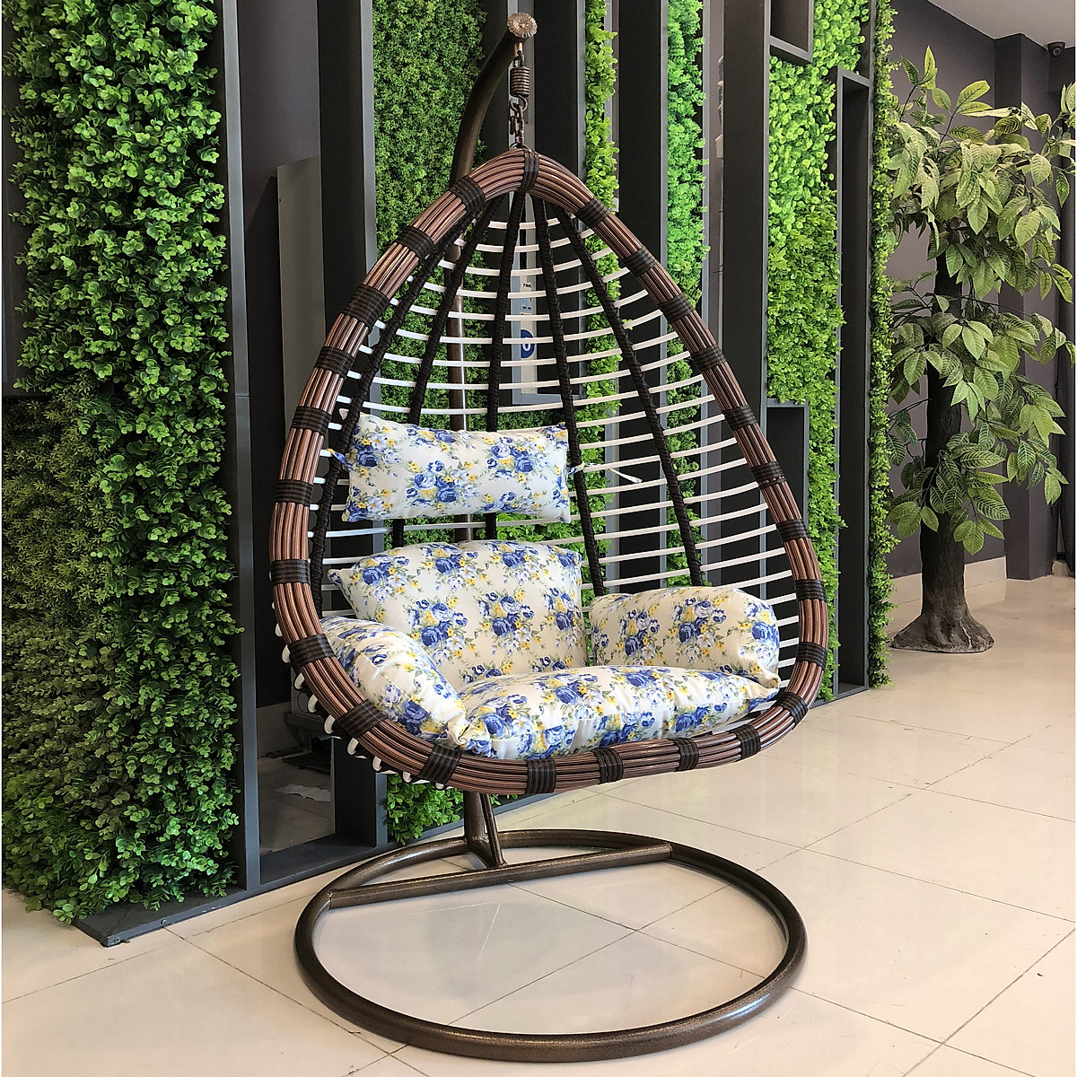 Xích đu nhựa giả mây giọt nước dây văng, xích đu ban công nhựa giả mây - Xưởng bàn ghế Bảo Phát.
