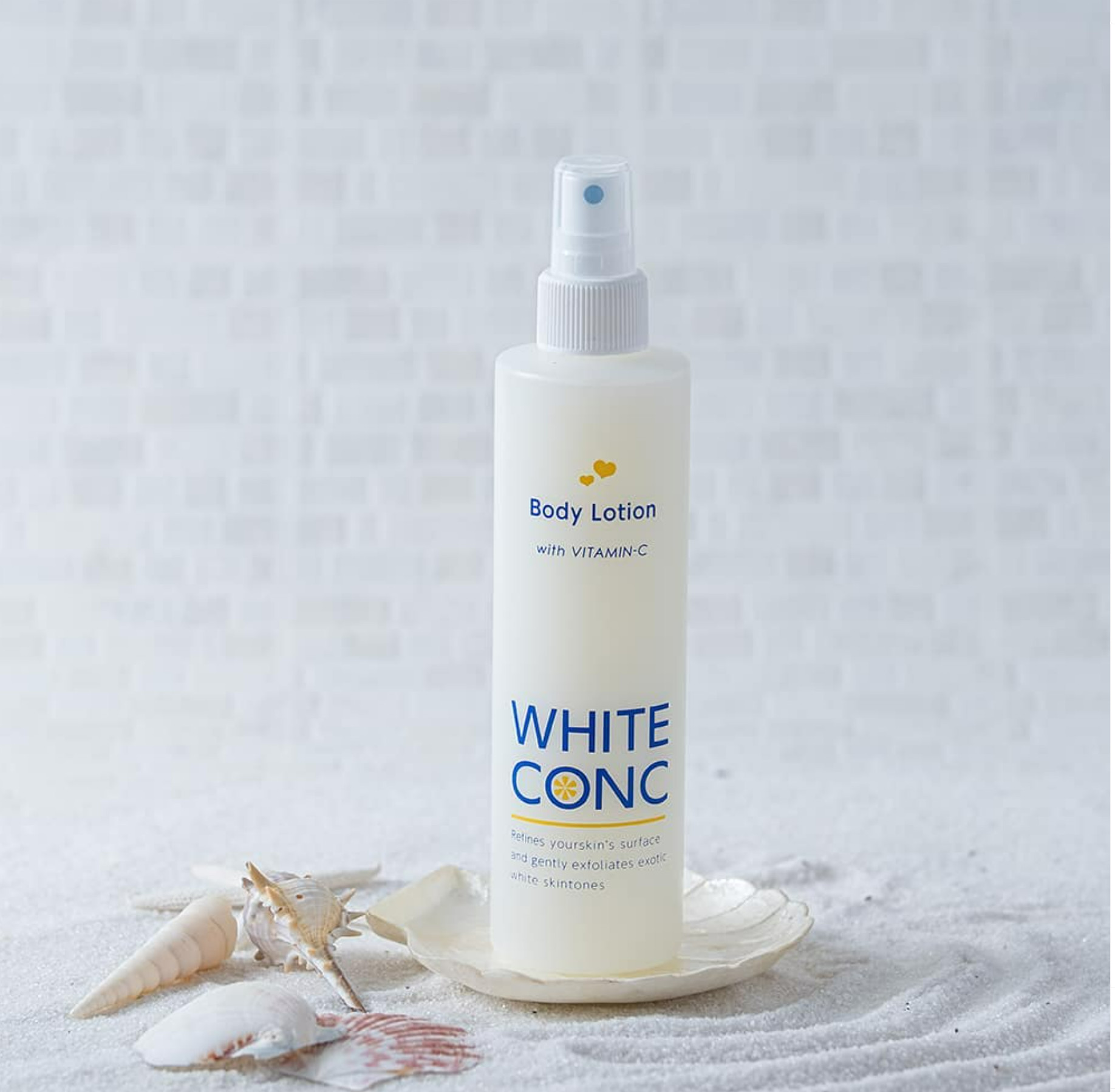 Xịt Dưỡng Trắng Da Toàn Thân White Conc có thành phần vitamin C, khoáng thiên nhiên tác dụng tăng cường đồ ẩm cho da, dưỡng trắng da toàn thân, làm mềm da, giảm tác hại
