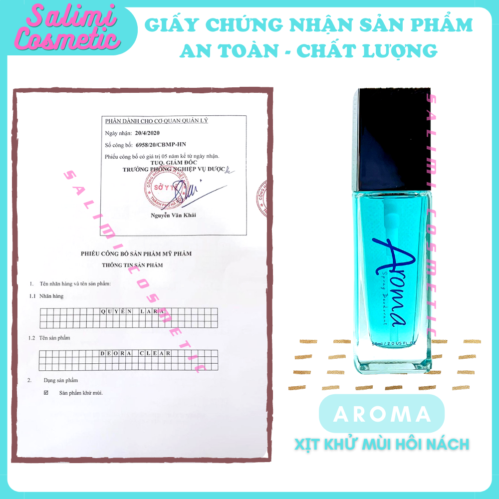 Mua tại TiktokMồ hôi nách làm bạn khó chịu, mất tự tin , hôi và bạn chưa biết cách giải quyết sao cho triệt để thì Xịt Khử mùi hôi nách AROMA là cứu cánh cho những nỗi lo đó của bạn CÔNG DỤNG: +Khử mùi hôi nách +Làm trắng vùng nách bị thâm +Giúp giữ mùi thơm suốt 24h +An toàn cho da nhạy cảm,không gây ố vàng Giảm 80% mùi + 50% mồ hôi sau 1 ngày sử dụng đầu tiên Giảm 95% mùi + 85% mồ hôi sau 5 ngày Dứt điểm 100 % mùi và mồ hôi sau 7 ngày sử dụng Hương thơm bền lâu hương nước hoa quyễn rũ THÀNH PHẦN: