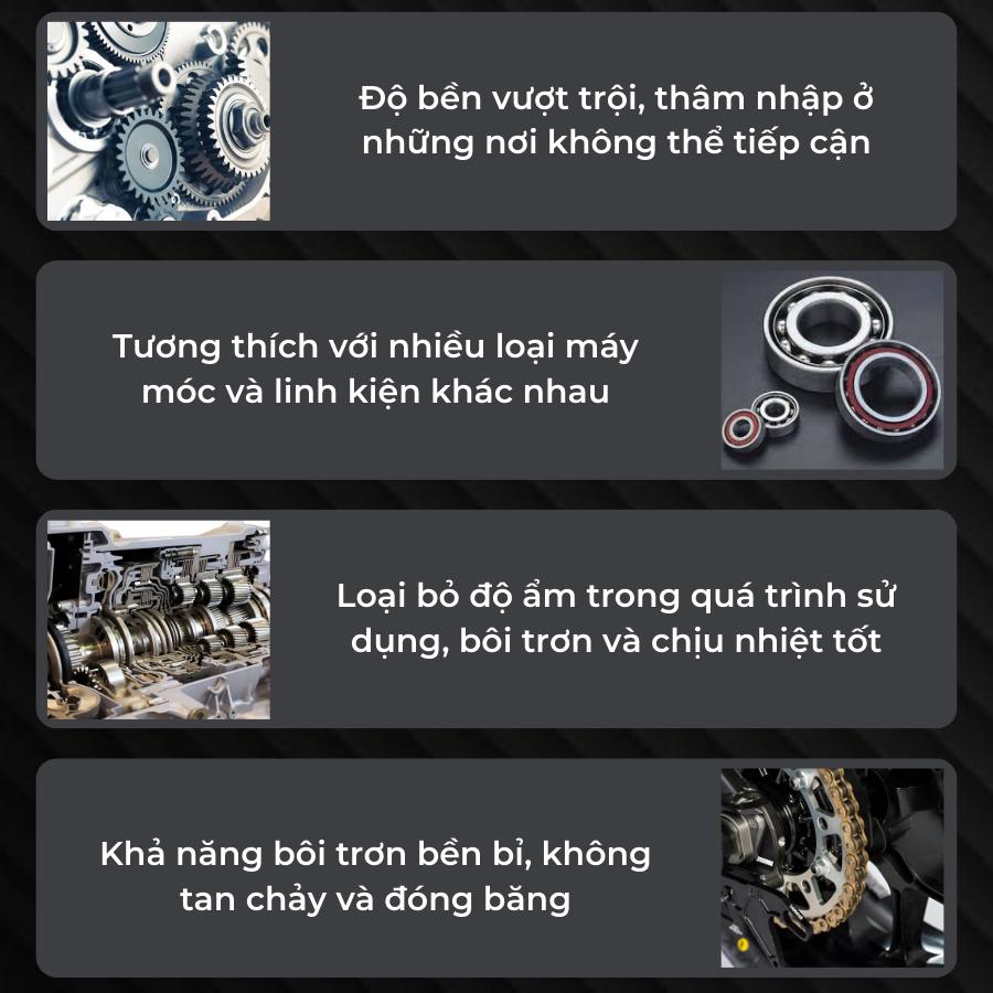• Giữ cho bề mặt được bôi trơn trong nhiệt độ khắc nghiệt