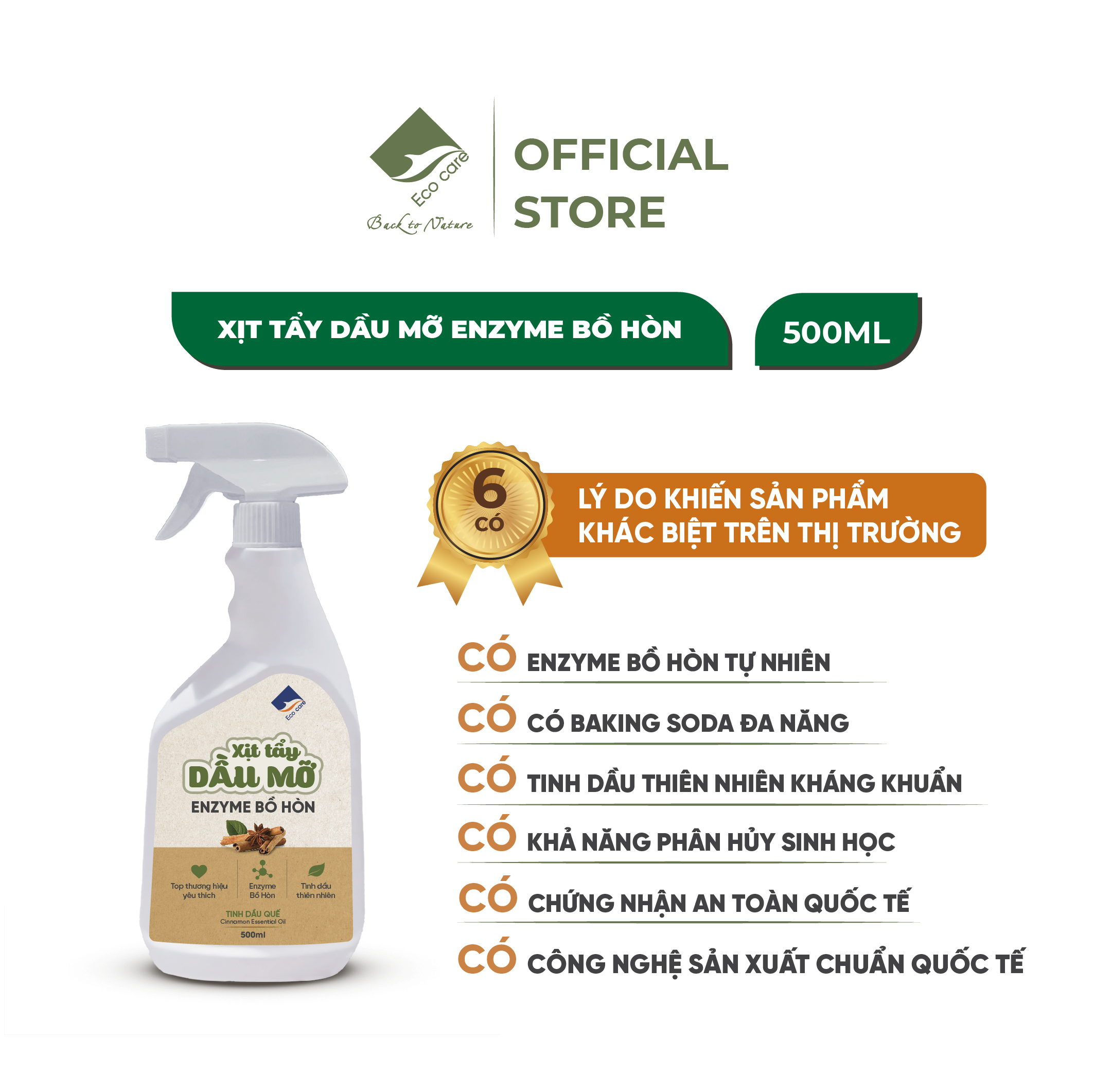 ✨Xịt tẩy dầu mỡ Enzyme bồ hòn ECOCARE 500ml tinh dầu Quế/Cam Sả kháng khuẩn, làm sạch thiết bị nhà bếp.
