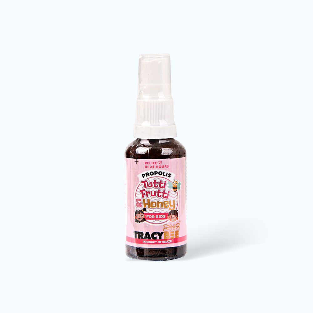 Keo ong xanh Tracybee Propolis Tutti Frutti & Honey là sản phẩm hỗ trợ giảm ho, viêm họng cho trẻ em. Sản phẩm chứa keo ong Brazil quý hiếm và các dưỡng chất tự nhiên, giúp kháng khuẩn cho đường hô hấp, tăng cường hệ miễn dịch, và ngăn chặn vi khuẩn gây hại. Sản phẩm có cơ chế xịt phun sương, giúp phân tán đều và len lỏi vào các niêm mạc họng.