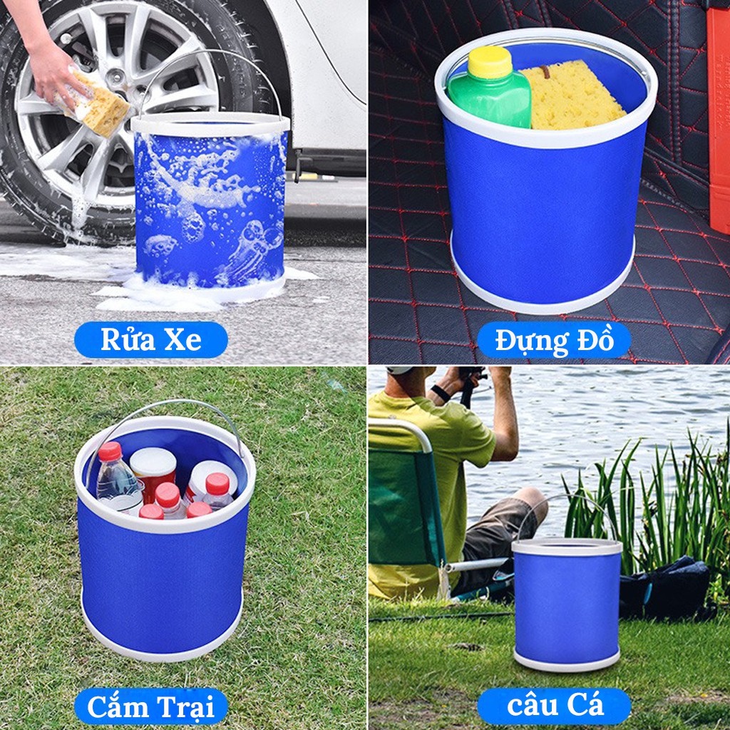 Xô Đựng Nước Gấp Gọn ( 13 L) - Xô Phượt , Xô Rửa Xe , Xô Câu Cá - PaKaSa - Hàng Chính Hãng Xô có quai xách bằng inox rất chắc chắn. Tiện