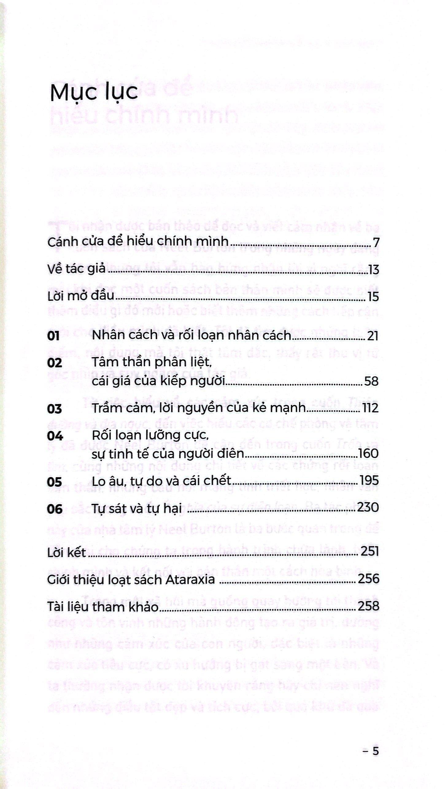 Cuốn sách được Neel Burton viết rất chặt chẽ với 6 chương tưởng chừng như không có sự liên quan, nhưng thực tế lại có hàm ý cực kỳ logic trong đó: năm chương đầu tiên, chúng ta cùng tác giả bàn luận về những chứng rối loạn tâm thần thường gặp (rối loạn nhân cách, tâm thần phân liệt, trầm cảm, rối loạn lưỡng cực, rối loạn lo âu), và chương thứ sáu, cũng là chương cuối cùng, nói về tự tử và hành vi tự hại.